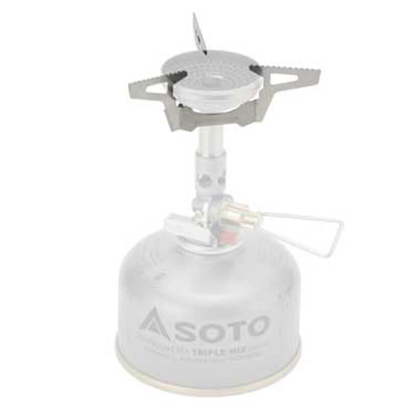 Three-prong pot support provides stability. User-friendly for one person. Stows nicely on the WindMaster. Windmaster stove is sold separately.