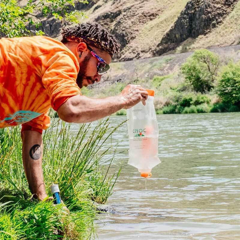 CNOC outdoors Vecto 2L Water Container - is a soft, 2 liters (68 oz), roll-up water container. It's compatible with the Sawyer Squeeze, Sawyer Mini, HydroBlu and LifeStraw water filters.