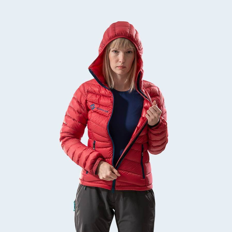 CUMULUS Incredilite Lady Endurance - lightweight jacket with hydrophobic down combines interesting design with the best available solutions in the outdoor clothing market. The ethically sourced Polish hydrophobic goose down and water-repellent Pertex® Quantum Pro fabric guarantee high resistance to moisture, even under prolonged exposure. The jacket uses a very light material, meaning it only weighs 325 g. Thanks to the low weight and small volume, you can easily take it with you as spare clothing.