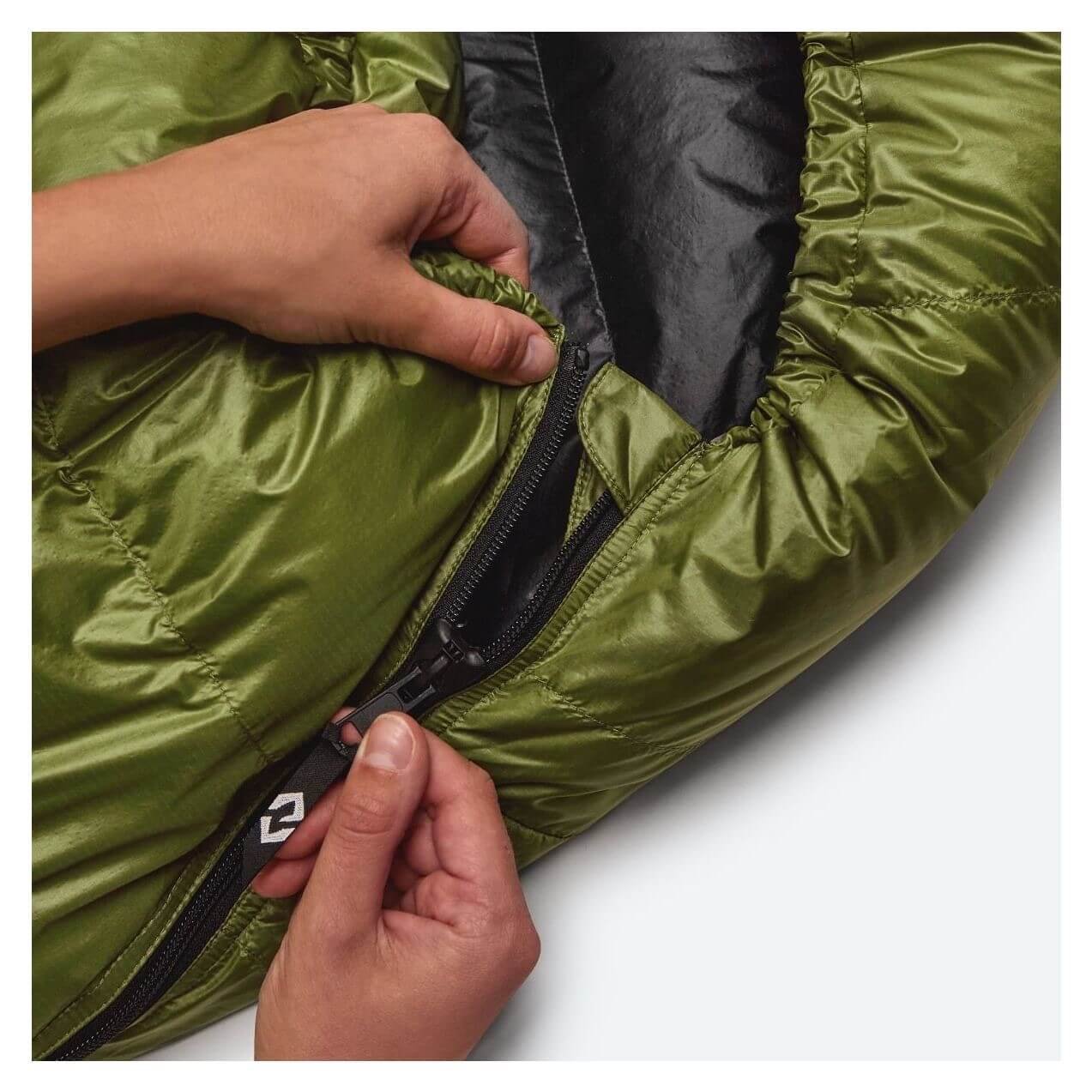 The advanced, trapezoidal design gives it a great advantage over the competition, which generally uses simple H-chamber structure with this mass of down. However, Lite Line 400 weighs less, because it is only 705 g, also thanks to excellent Pertex Quantum fabric, weighing 29 g/m², which is ultralight but downproof and nicely soft in touch. This sleeping bag is also suitable for use in light weather conditions and will keep you warm even in close-to-winter conditions weighing much less than 1 kilo.