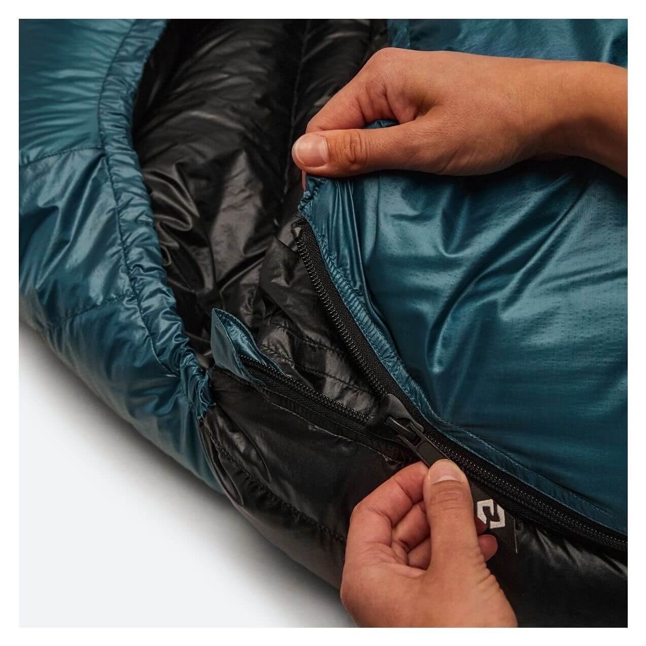 Full length 5 mm YKK zipper with self-locking sliders let you regulate the temperature inside. The innovative zipper guard prevents the zipper from snagging on the bag's fabric. Double full length down-field zip insulating baffle running along doesn't allow the cold air to come inside and prevents heat loss.
