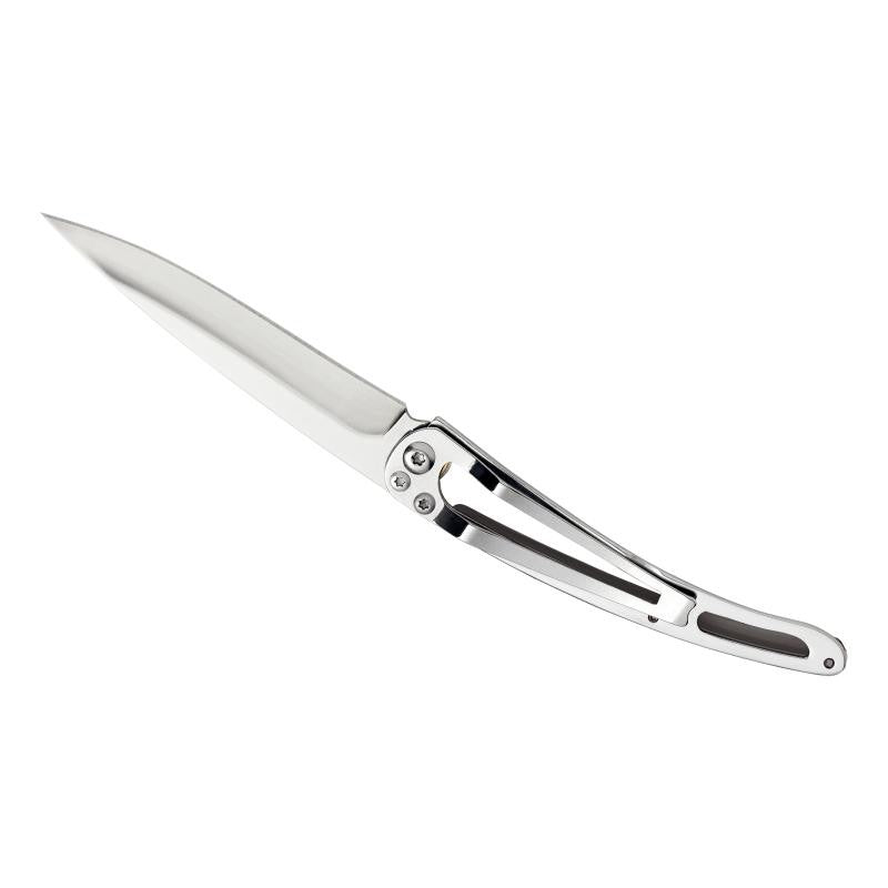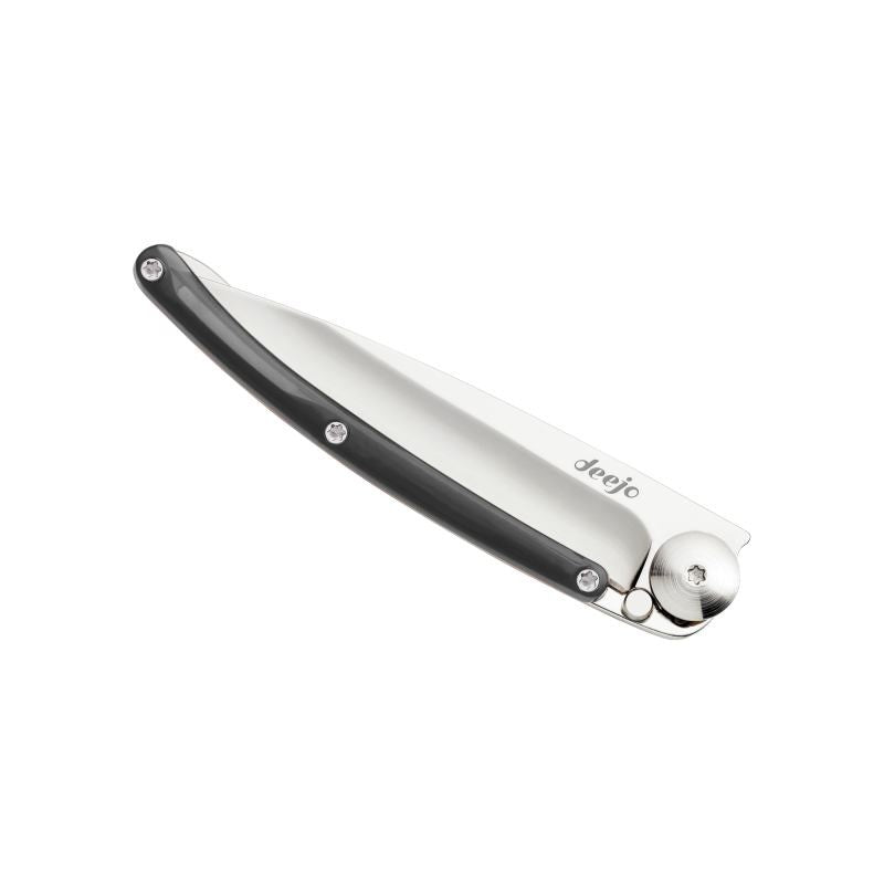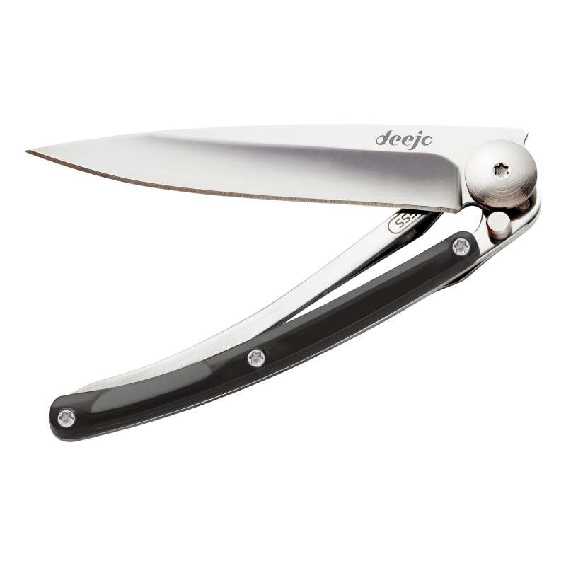 Deejo color 27g - the world’s lightest knife. Black suits any style, any genre, any mood. Simplicity seekers will appreciate the universal, timeless finish and graceful, clean shaping of the inpressive, thin blade. Ultra-light knife in 420 stainless steel, mirror finish. Secure liner lock system. Translucent polycarbonate handle slab (in white). Belt clip. Delivered in a gift box.