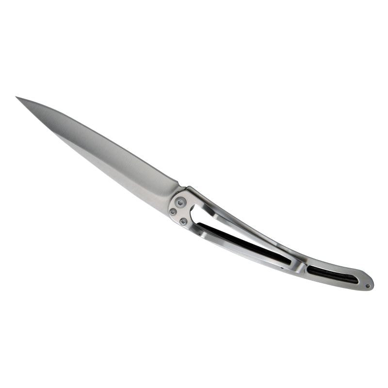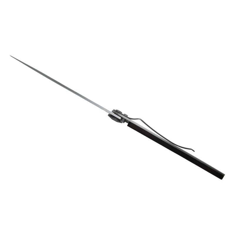 Ultra-light knife in 420 stainless steel, matte finish. Secure liner lock system. Belt clip. Solid Granadilla wood handle slab.