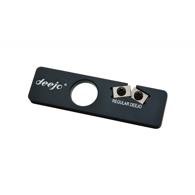 Pocket sharpener at a fixed 40° angle. Double-blade tungsten carbide face. Black aluminum handle. It has never been easier to sharpen a Deejo knife and with no risk of scuffing your tattoo!