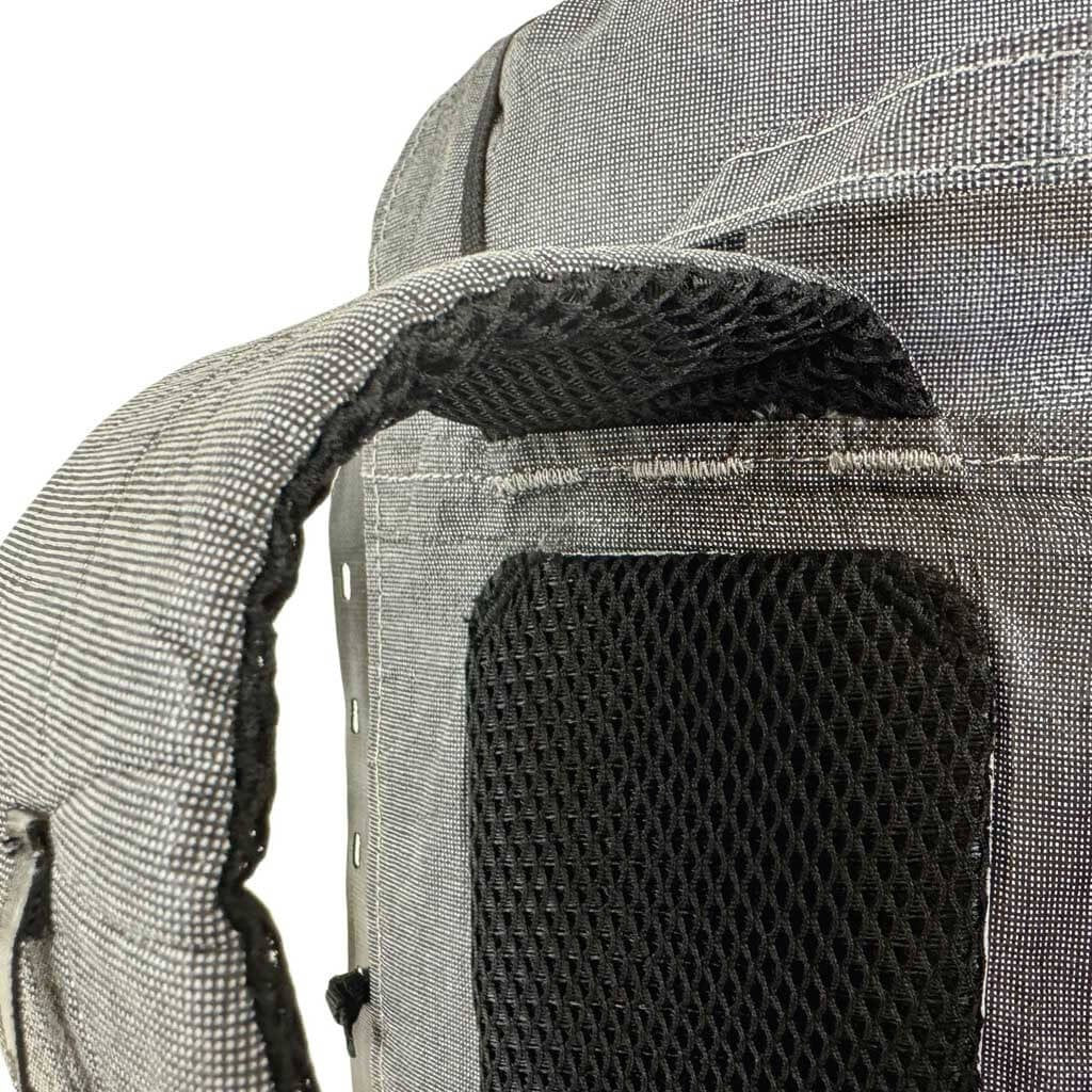 Dual air mesh strips are heat bonded to the backpanel for padding, grip, and ventilation. |