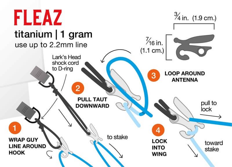 The titanium material makes this small piece of gear durable and able to withstand any weight and elements of the forest. Fleaz are manufactured in the U.S. The small hole in Fleaz is easy to loop any cord through. Tarp Fleaz are tumble-polished to provide a smooth finish to avoid scratching or ripping any fabric. This helps Fleaz work more efficiently. A quick wrap around the antenna will reduce any slipping.