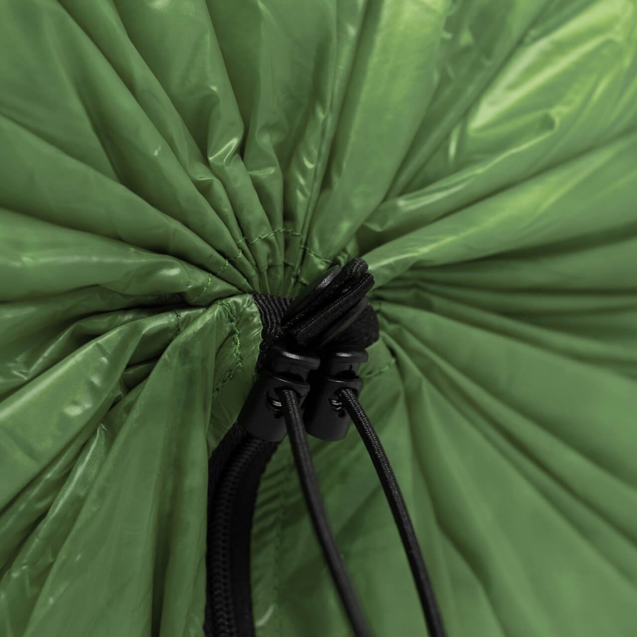 On warm nights, when completely un-cinched it can lay open as a blanket, allowing you the ability to kick out a leg or reposition or your arms. In colder temperatures, when you want to increase warmth you can zip up the ¼ length zipper and use the drawcords to cinch close the footbox. It'll create a fully enclosed footbox, similar to a sleeping bag. This keeps out drafts, and ensures that your feet stay toasty warm! This design allows you to dial in a comfortable night’s sleep in a wide range of different temperatures and climates.