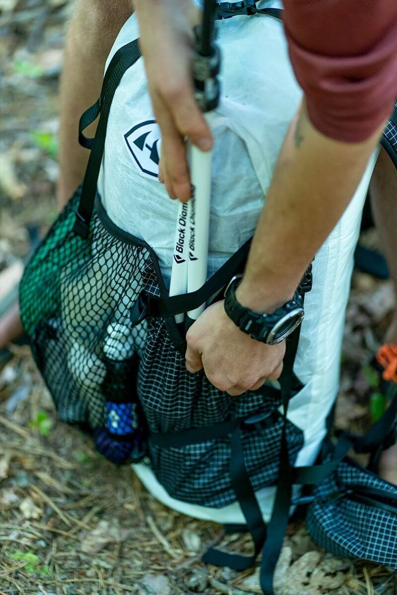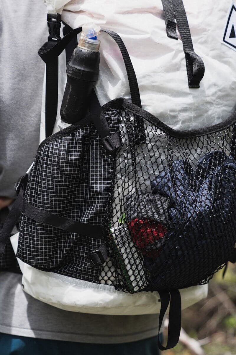 - External Pockets: One external center mesh pocket with two solid-panel Hardline with Dyneema® pockets on the sides – dry gear faster with the middle pocket, protect or hide items in the sides