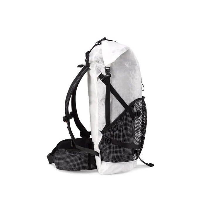 The 2400 Junction is identical to Hyperlite’s 2400 Southwest and 2400 Windrider backpacks with the exception of its external pockets. It features two solid side pockets constructed of Dyneema® Hardline to provide an extra durability when hiking off-trail, and an external center mesh pocket to give visibility to the contents and to dry out damp gear.
