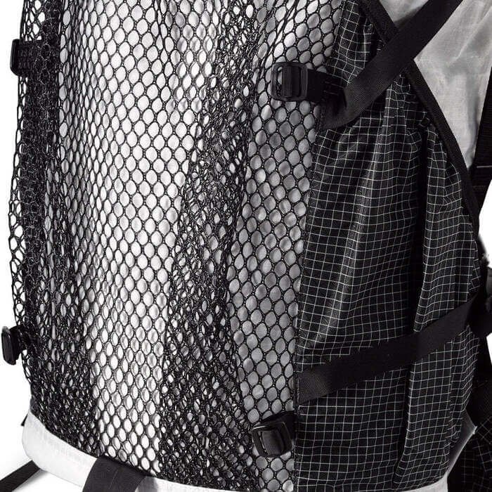 - External Pockets: One external center mesh pocket with two solid-panel Hardline with Dyneema® pockets on the sides – dry gear faster with the middle pocket, protect or hide items in the sides
