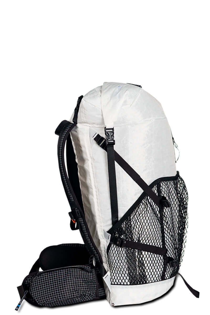 Hyperlite Mountain Gear manufactures a line of ultralight backpacks designed for everything from a quick day trip to an extended expedition. HMG backpacks are made of 100% waterproof Dyneema® materials with tape stitch lines. When used with ultralight HMG Dyneema stuff sacks, their gear provides a rainproof system for your excursion. Combined with ultralight shelter systems, you will feel like you can fly. Cushioned shoulder straps and hip belts, padded lumbar support and shaped aluminum stays, provide a super-comfortable fit. HMG lightweight Dyneema packs have been specifically designed for backpacking, mountain climbing, and ice climbing, but are suitable for cycling, pack rafting, day hiking or just getting around town.