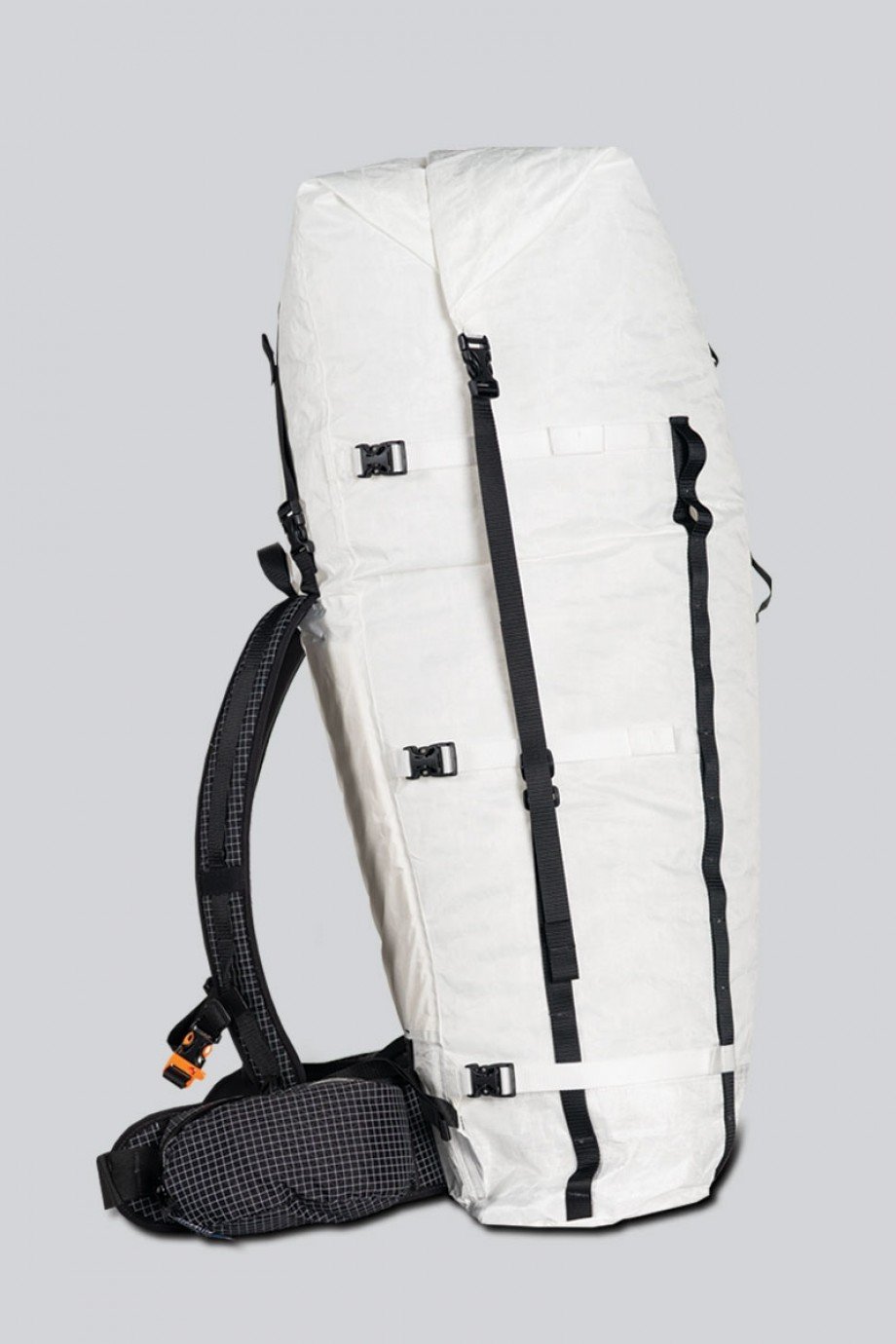 - Dyneema® Hardline dual-density hip belt with 1/8” closed cell rigid foam, 1/4” closed cell foam, plastic stiffener, and spacer mesh