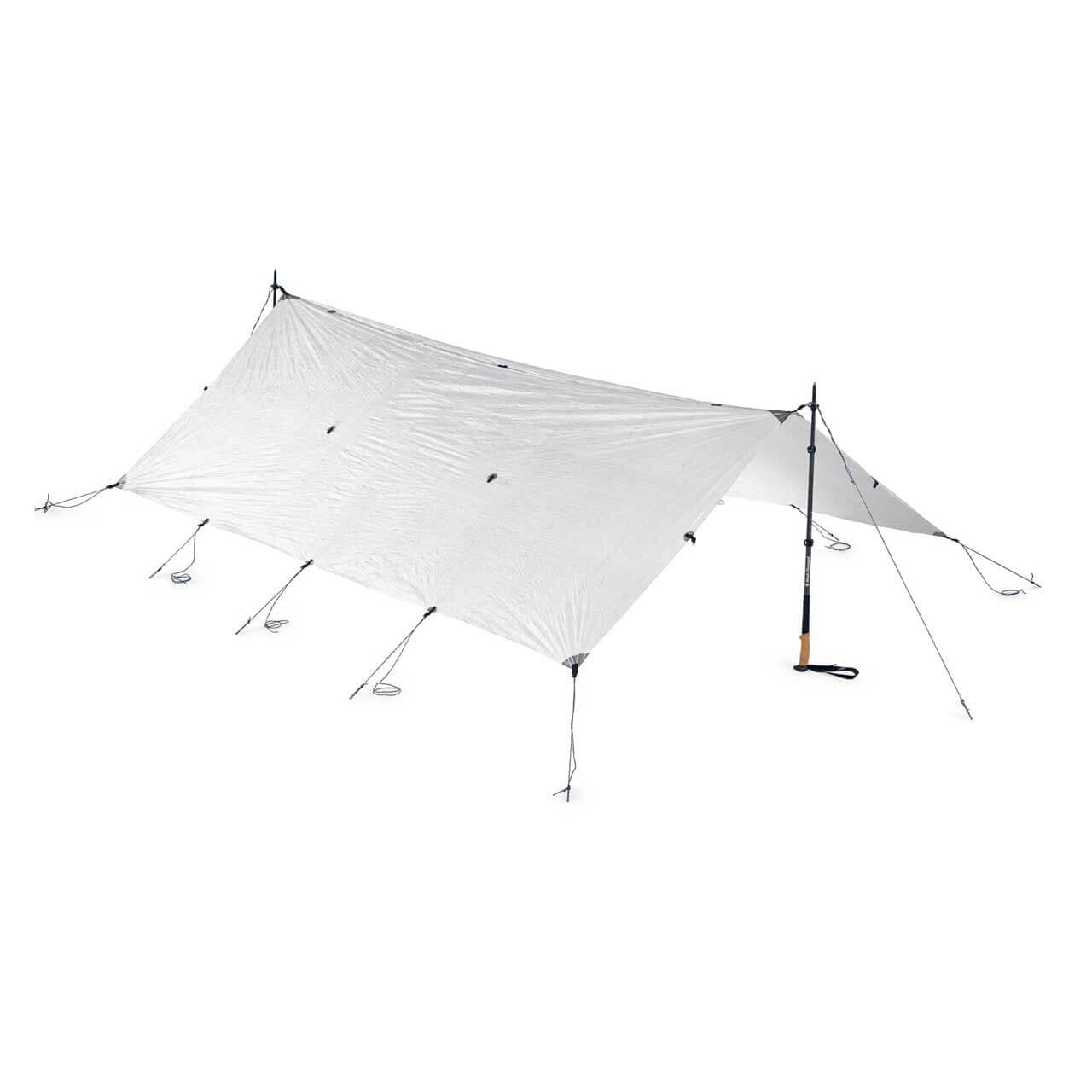 Made with durable and 100% waterproof Dyneema® Composite Fabrics (formerly Cuben Fiber) and with fully bonded seals, these ultralight tarps are optimized for strength, weight, performance and versatility. Stake kits are sold separately, and we recommend you utilize adjustable trekking poles for set up. Available in Classic White or Spruce Green.