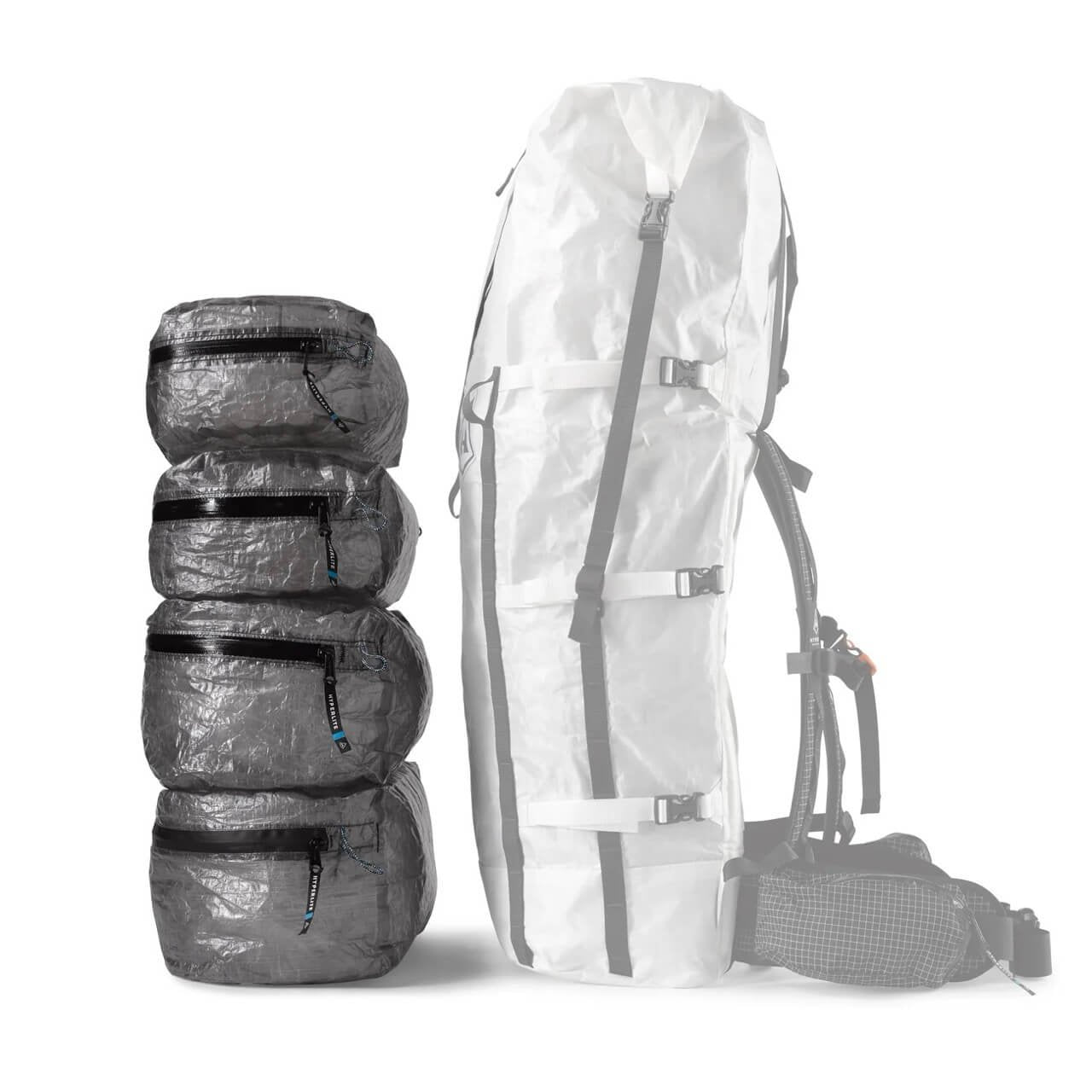 When it comes to increasing mileage on extended adventures, every cubic inch counts. HMG designed stackable Pods as a key organizational, space-saving and weatherproofing tool. They are an excellent replacement for unwieldy food bags, which when filled to the brim, are more like a bunch of footballs crammed in your pack. Fitted perfectly for HMG 2400, 3400 and 4400 packs, Pods leave no volume unused, they allow you to organize your gear more efficiently, and the clamshell design makes it easy to find food when you need it. Made of 100% waterproof Dyneema® Composite Fabric (formerly Cuben Fiber) and with waterproof zippers, they offer additional weatherproofing to your pack system.