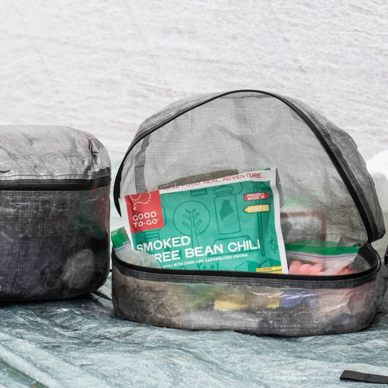 The clamshell-shaped backpacking Pods also allowed him to quickly and easily find the snacks and meals he needed. He no longer had to dump everything out of large food bags.