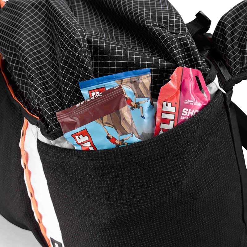 | Front External Pockets: | Large dual-entry front pocket provides significant storage as well as streamlined access to smaller items (i.e. tent stakes) without the need to dig/empty the pocket fully. Made from an extremely durable Dyneema® Stretch Mesh |