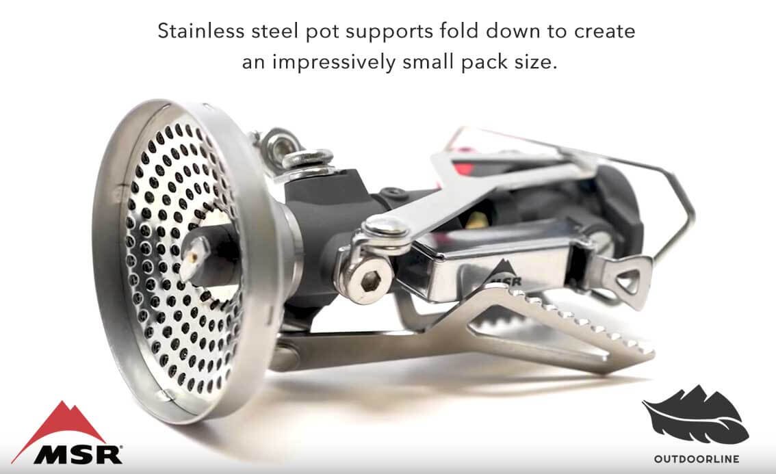 Stainless steel pot supports fold down to create an impressively small pack size.