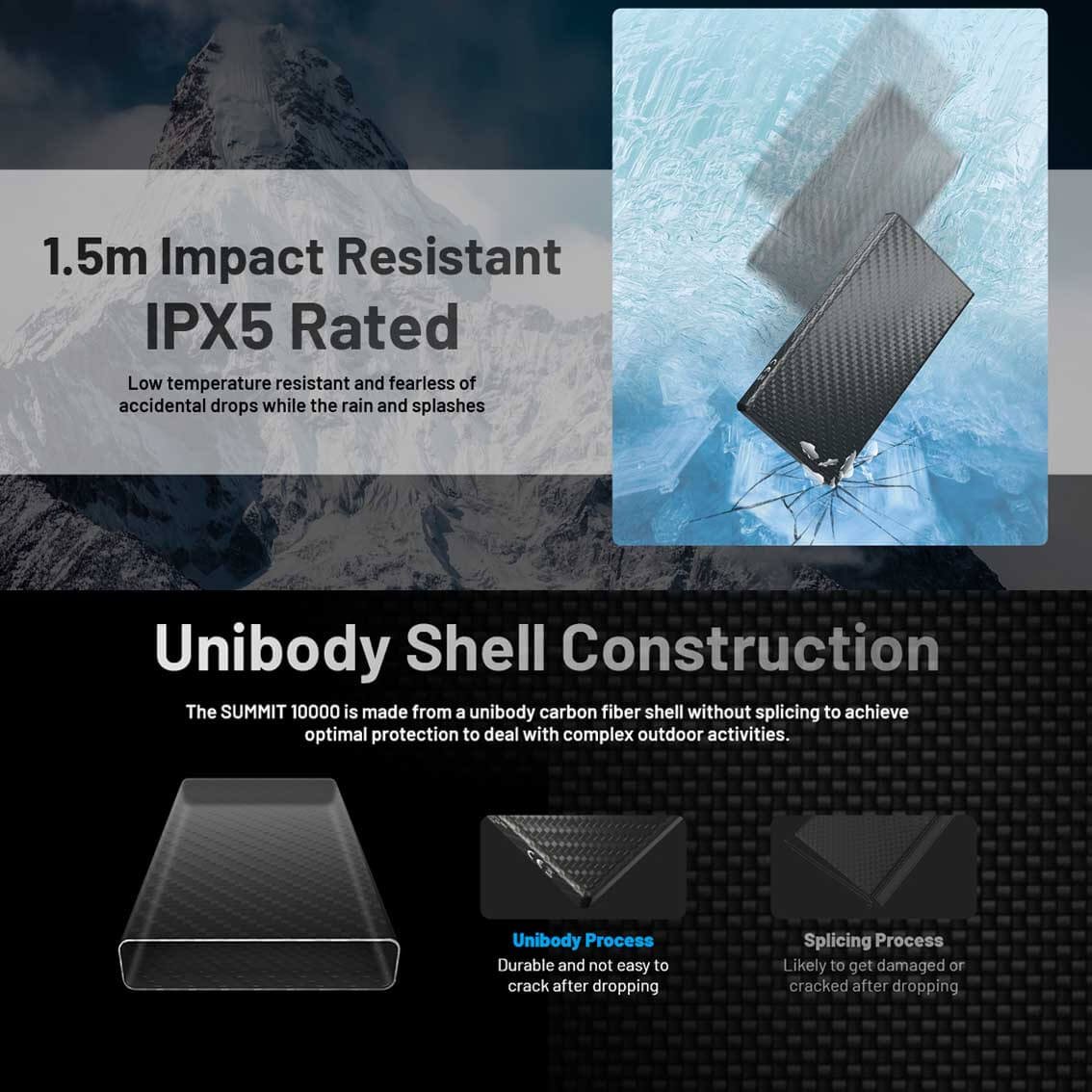 Equipped with the PI heating system, the SUMMIT 10000 has high efficiency and high speed heating performance to ensure that the battery can work at an appropriate temperature for reducing the loss of power. The carbon fiber confined structure also guarantees thermal insulation in low temperature environments.