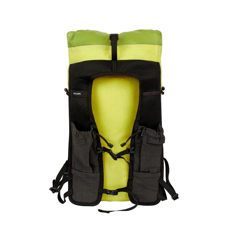 The body of the Joey has two small side water bottle pockets, one Pa’lante signature bottom stretch pocket with two separate ports, and a big rear pocket, all made from durable UHMPWE grid mesh material. The side pockets can hold small bottles and trekking poles using the shock cord. However, they won't fit larger bottles, which could be seen as a limitation rather than a flaw.