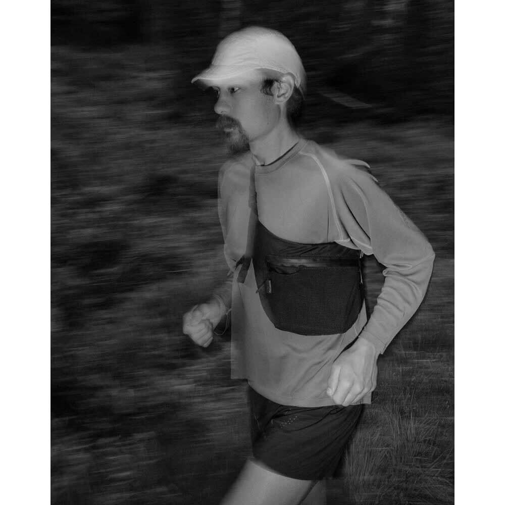 To wear the Sidebag, attach it under the left armpit and secure it with the included nylon webbing at the shoulder. Additionally, it includes a slim detachable upper waist belt for added security and adjustable fit. This keeps it stable and allows for smooth moving even on rough terrain.