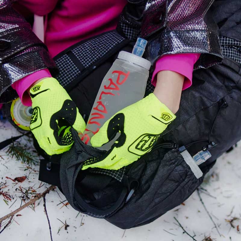 Pa’lante Water Bottle - collapsible water bottle with Pa’lante logo that fits into your pack's chest pocket. Easy to fill from a mountain stream and water filtering into due to the wide opening.