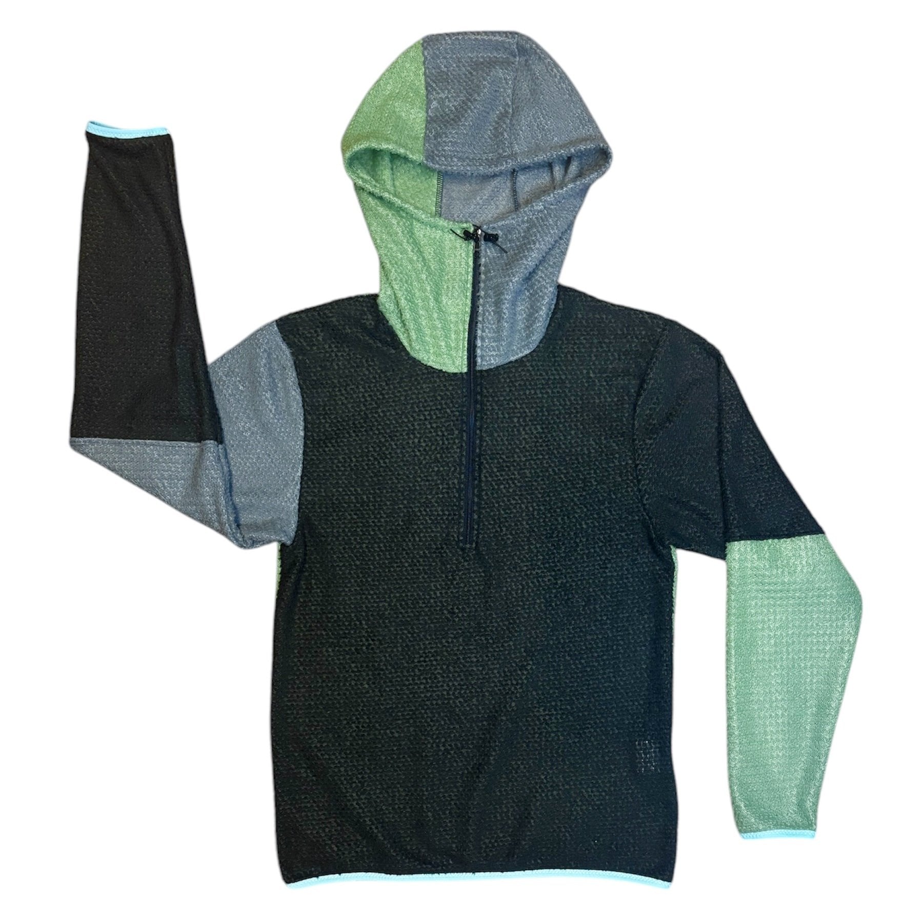 Grey with Black & Green: The front main panel is grey, complemented by three-color accents: grey, black, and green on the sleeves, hood, and back panel. Each piece may vary slightly, making every garment unique.