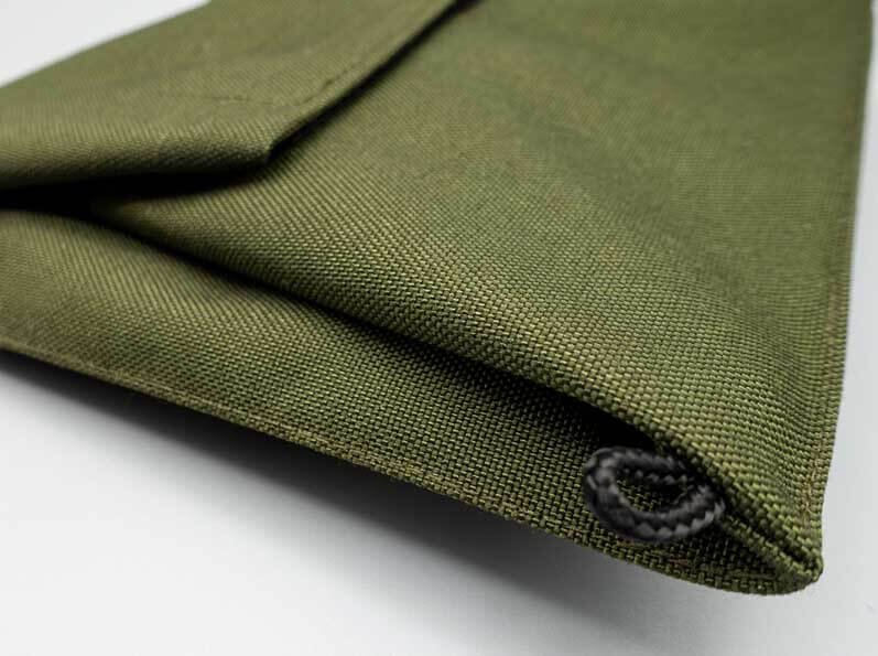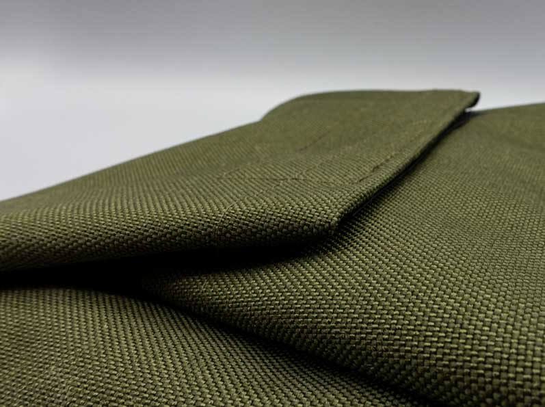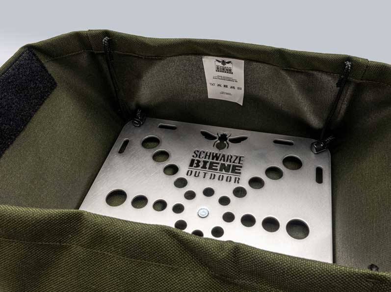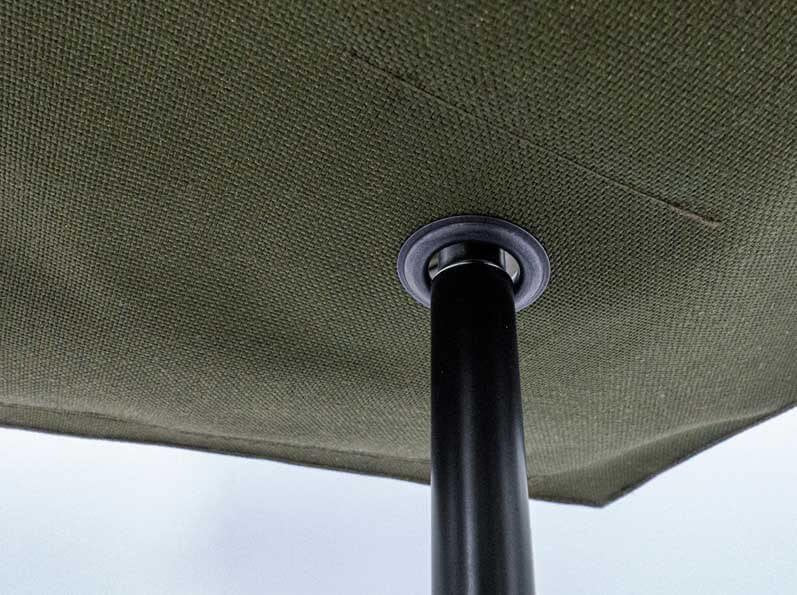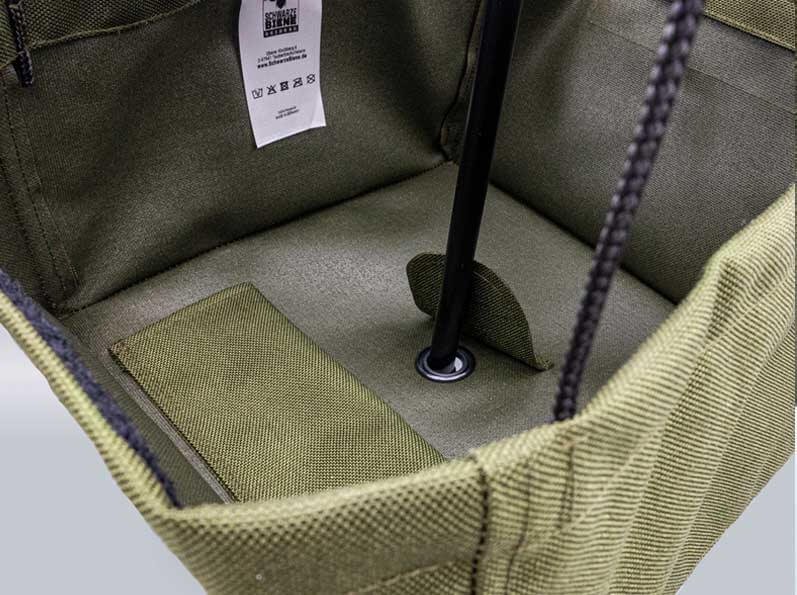 The bag is made of Cordura 500D, light, robust, water-repellent material. The ground spike is stored in a separate, integrated compartment.