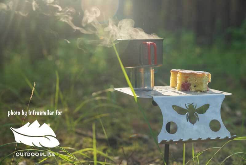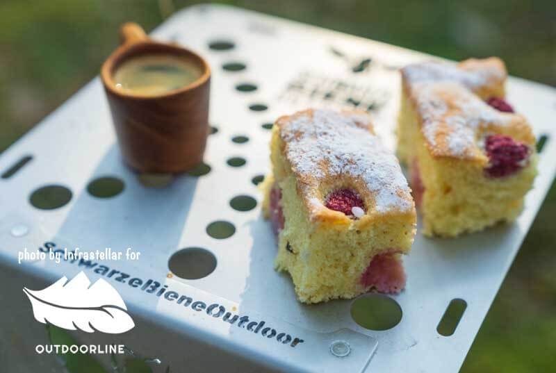 As all tables from Schwarze Biene are compact, lightweight and super quick to assemble. Just simply insert the ground spike into the ground, screw the aluminum table on it and start relaxing.