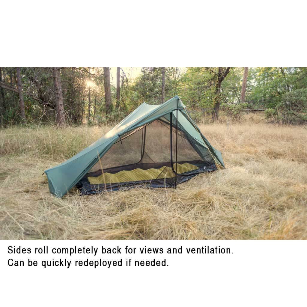 - Protected entry/exit ensures the interior stays dry during rain, and it accommodates sleeping pads up to 63.5 cm / 25 in wide.