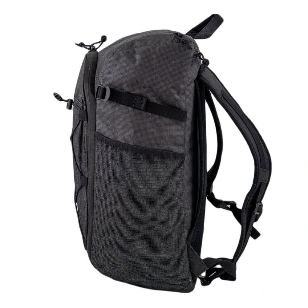 Comfort is a priority with the Dragonfly, featuring signature s-strap shoulder straps and a sternum strap. For additional support, low-profile attachment loops allow for the optional Dragonfly + Packrat Hipbelt. A newly designed padded haul loop offers a comfortable grip, even when carrying heavy loads. The pack's exterior is equipped with YKK AquaGuard zippers, adding water resistance to the Dragonfly's already impressive durability. Despite its ruggedness, the pack maintains a sleek, minimalist aesthetic, particularly in the all-black version, making it suitable for both urban and outdoor settings.