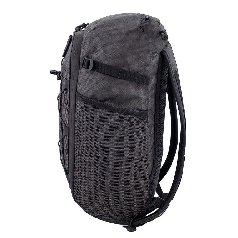Comfort is a priority with the Dragonfly, featuring signature s-strap shoulder straps and a sternum strap. For additional support, low-profile attachment loops allow for the optional Dragonfly + Packrat Hipbelt. A newly designed padded haul loop offers a comfortable grip, even when carrying heavy loads. The pack's exterior is equipped with YKK AquaGuard zippers, adding water resistance to the Dragonfly's already impressive durability. Despite its ruggedness, the pack maintains a sleek, minimalist aesthetic, particularly in the all-black version, making it suitable for both urban and outdoor settings.
