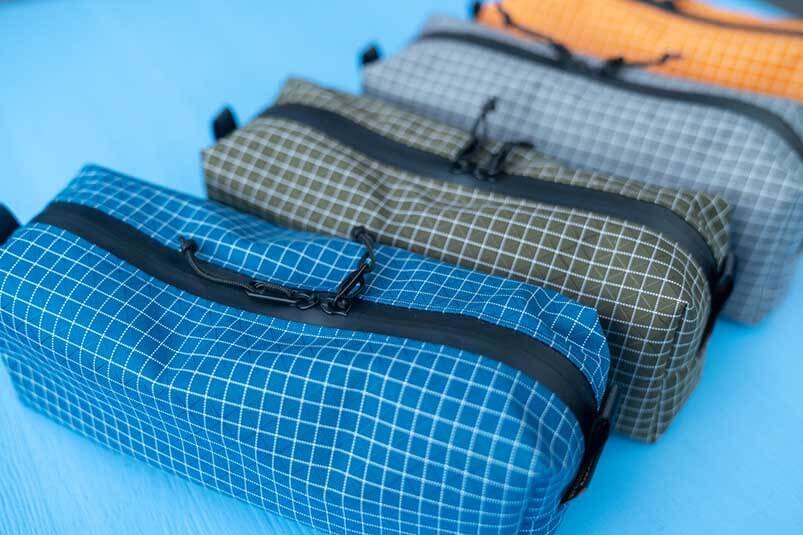 The pouch is made of a waterproof fabric with a PU coating on the backside and waterproof zipper which keeps your essential tools dry. Not seam sealed.
