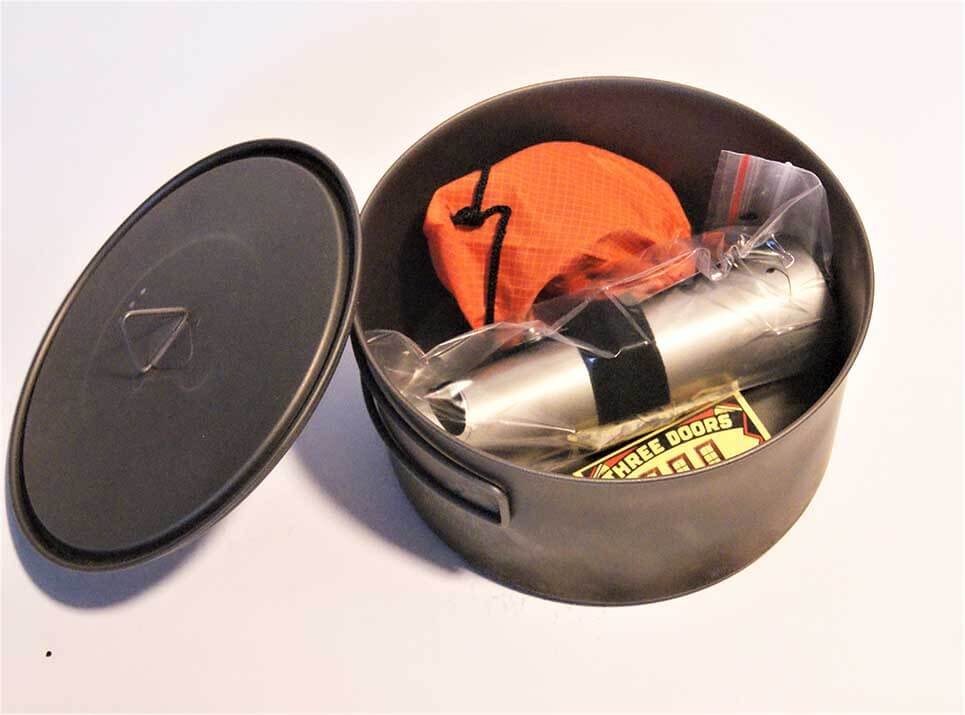 It is easily packed by rolling it into a roll and securing it with velcro. After packing it fits inside the pot.