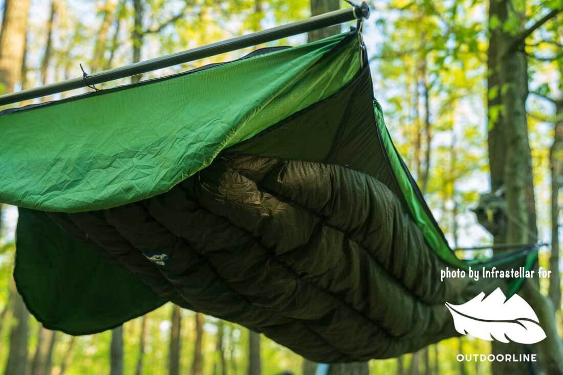 Lynx underquilt fits perfectly and provides great coverage on the Ridgerunner. Quick install the underquilt on the bottom of the hammock, just clip it on and you are done. It packs down amazingly small and the weight is minimal.