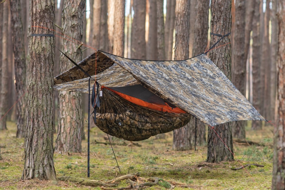 Setup: Blackbird XLC olive green, Underquilt Wookie 0°F Snowday camo, Tarp Mountainfly Snowday camo