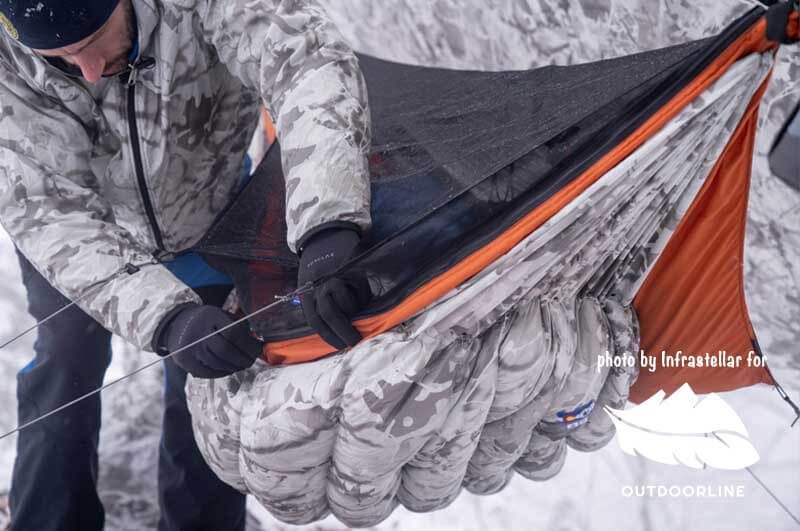 It doesn’t require any adjustment, you literally set it and forget it. If you are over 193 cm (6’4″) in height the Wooki is still sufficient. The insulated part goes right to the tip of the footbox and your feet should never hang past that point when laying in the hammock correctly. If the tip of your head sticks a few inches past the insulation this is also not an issue, in warmer weather you do not need insulation there, in colder weather you will be wearing a hat or down hood and possibly a pillow, any of these things will take care of insulation for your head. We have users all the way up to 198 cm (6’6″) using the Wooki with no issues.