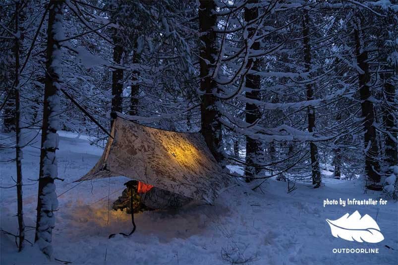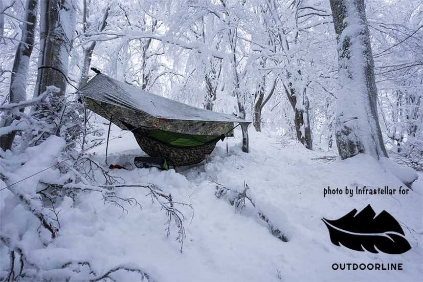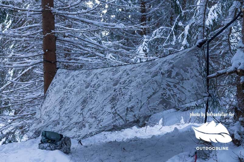 Setup: Blackbird XLC Olive green, Underquilt Wookie 0°F Snowday camo, Tarp Mountainfly Snowday camo