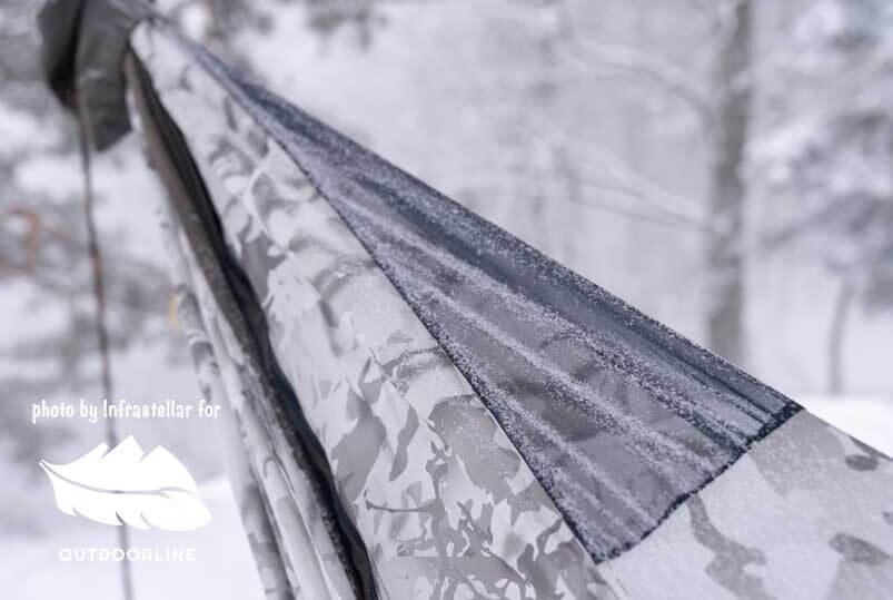 Setup: Blackbird XLC, Underquilt Wookie 0°F Snowday camo, XLC Winter Topcover Snowday camo