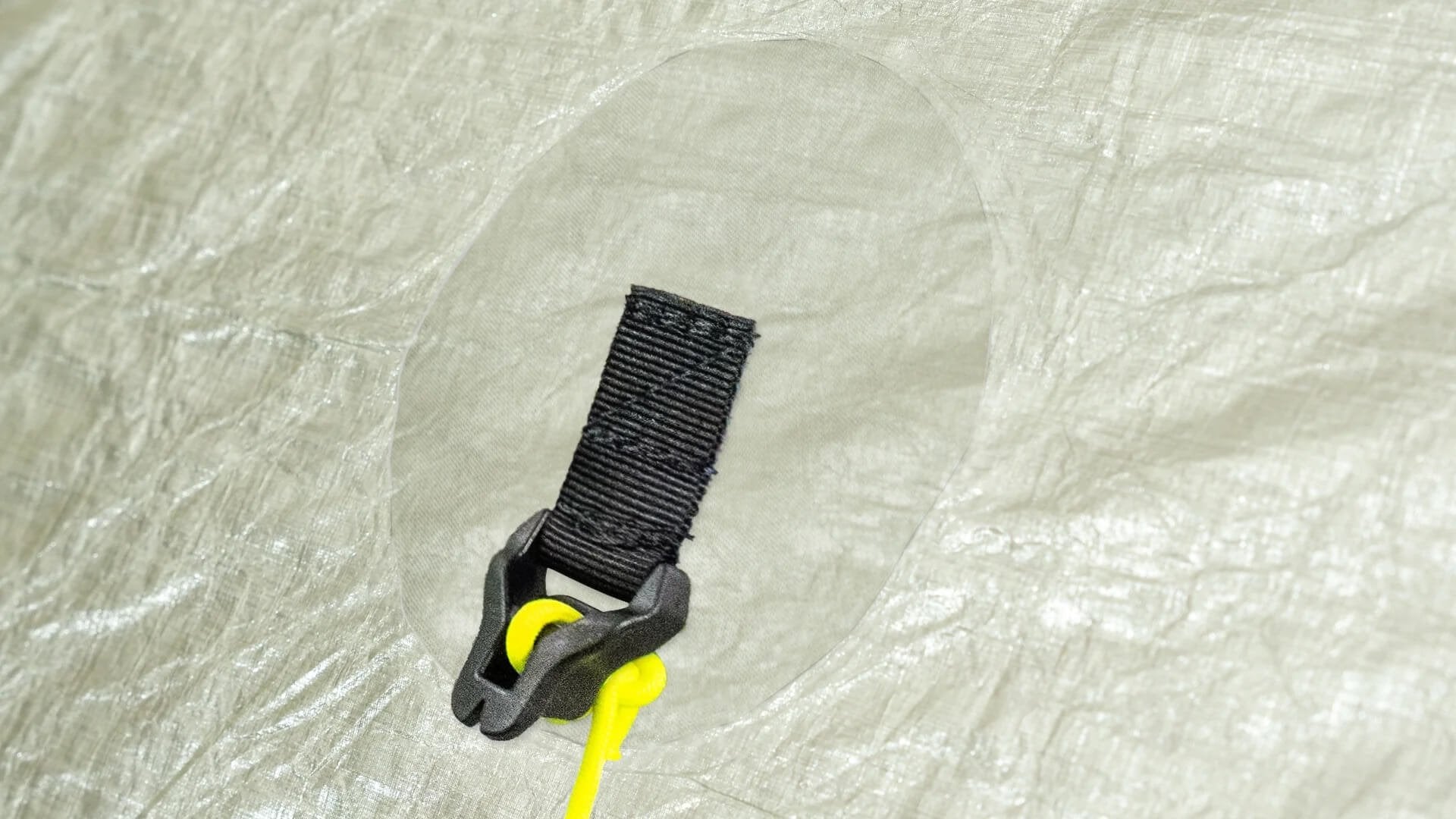 - The ridge seam is taped and the tie outs have bonded reinforcements. No seam sealing necessary.