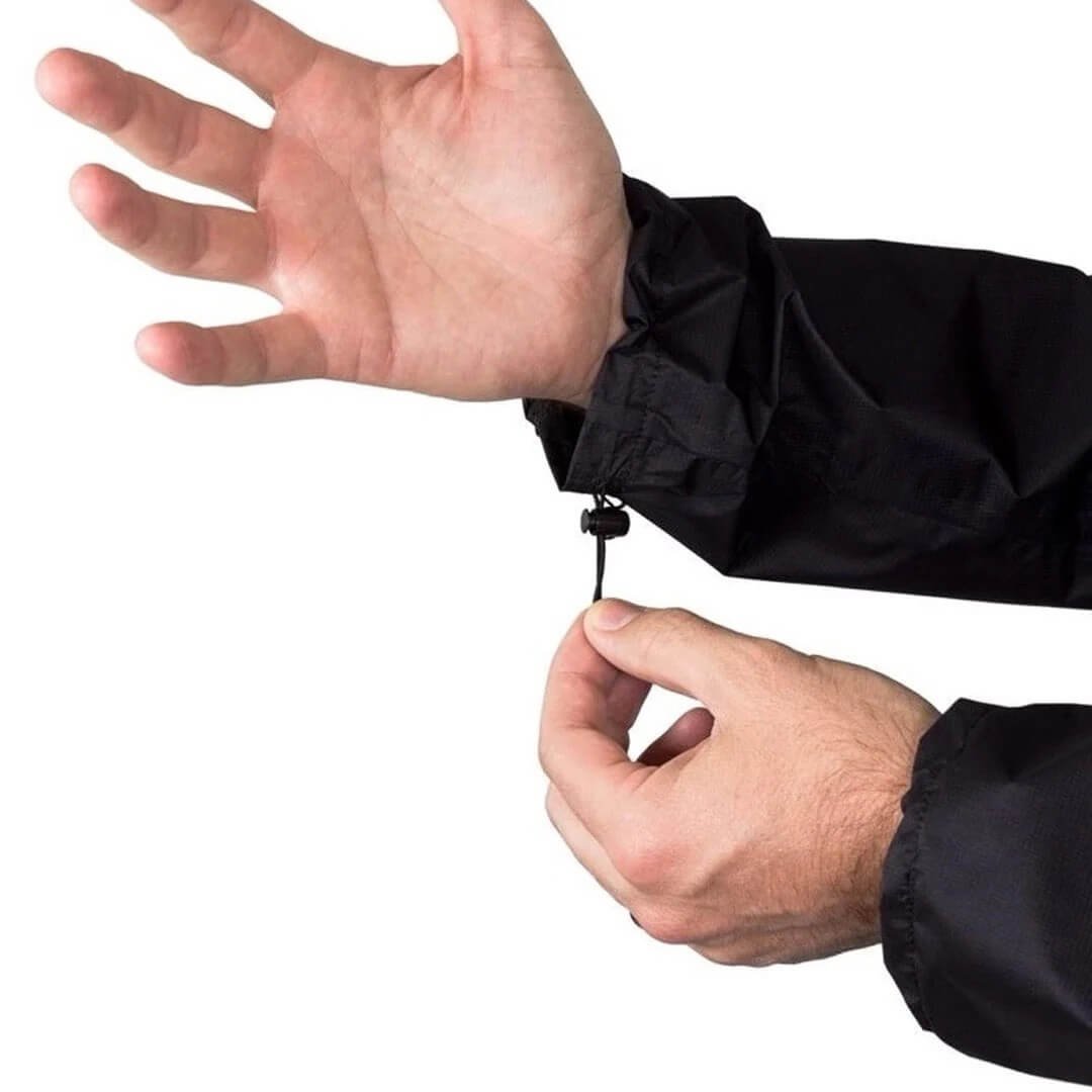 Adjustable elastic cuffs, hem, and hood for a personalized fit and better seal against the elements