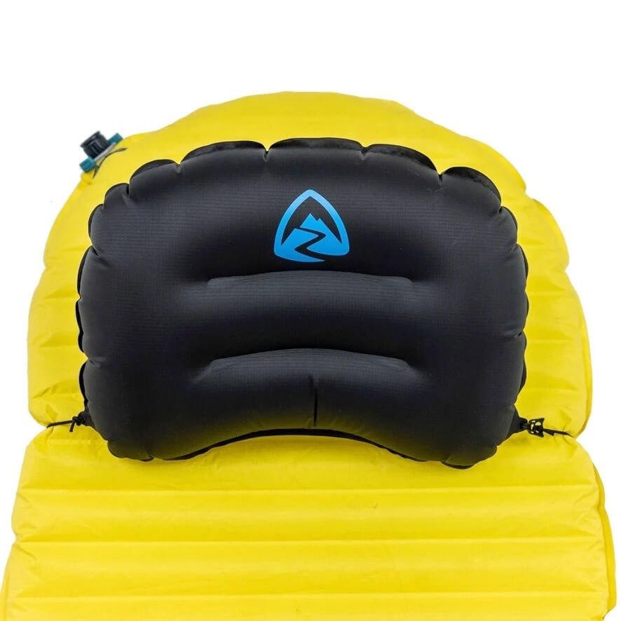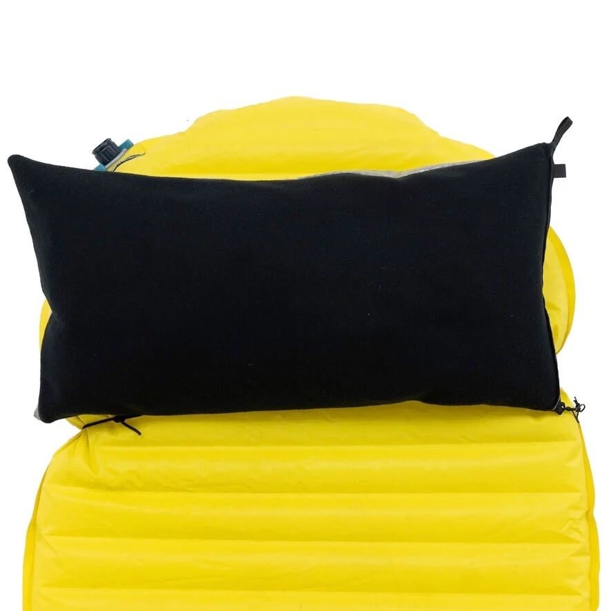 The stretchy attachment cord includes a spring-hook so that you can adjust it tight, and hook and unhook it to slide a shirt or neck gaiter over your inflatable pillow.