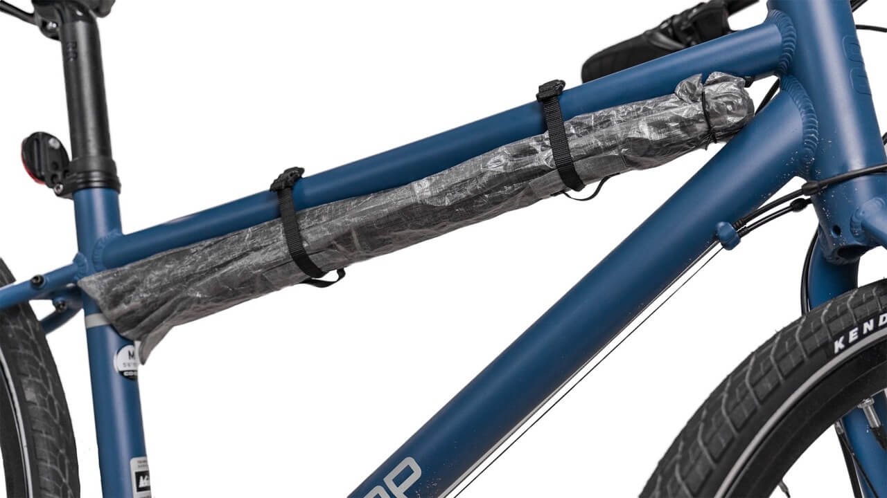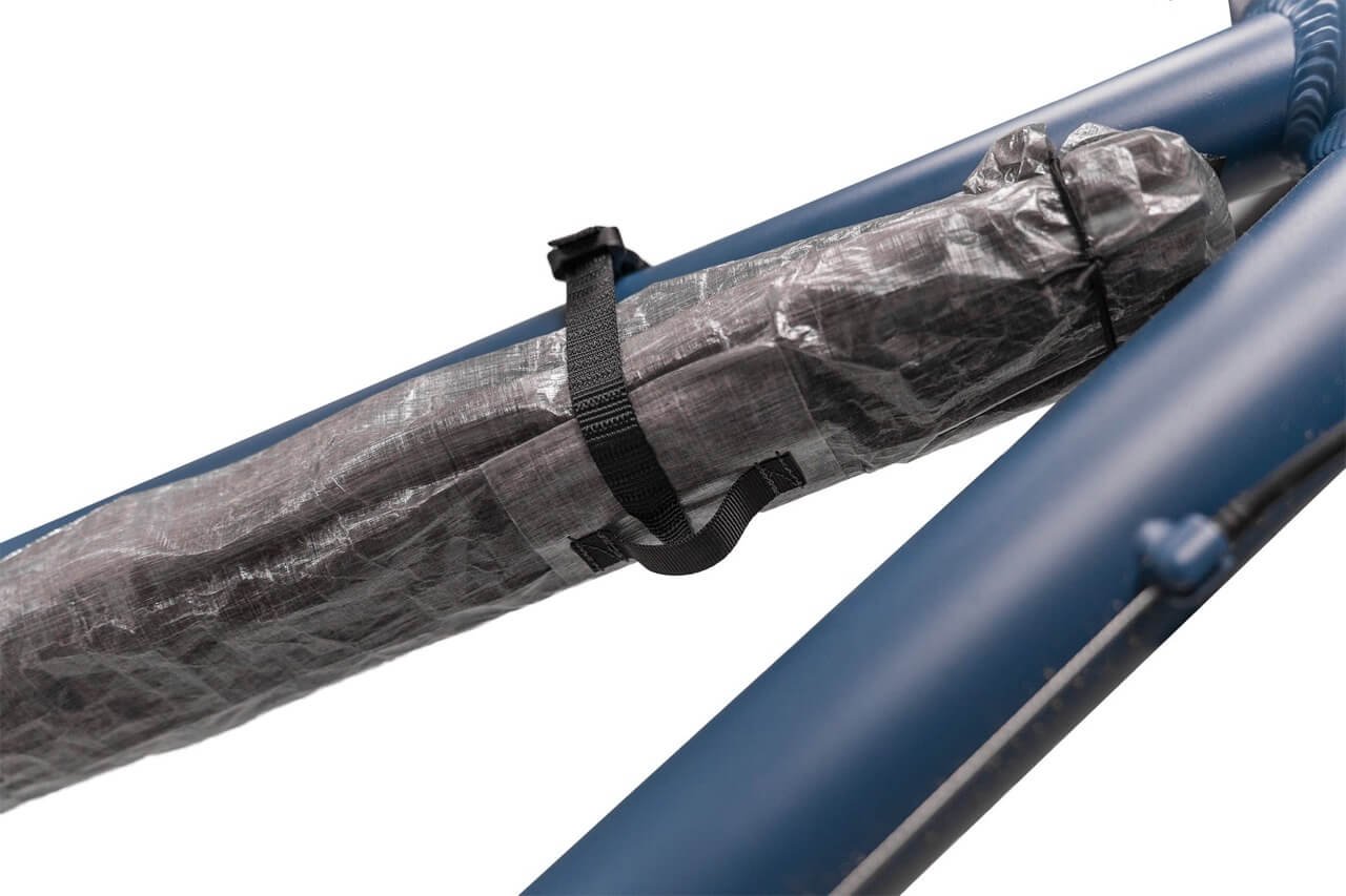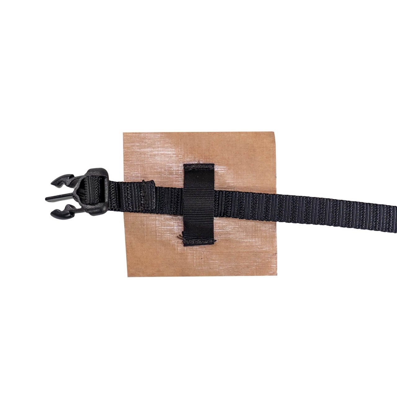This Dyneema® Composite Fabric patch has a molly loop sewn to it and tape adhesive on the back. Peel off the brown paper back and stick it where you need it. You can use this to add light-duty attachment points to your dry bags or other items and attach them to your pack or bike frame by threading webbing through them.