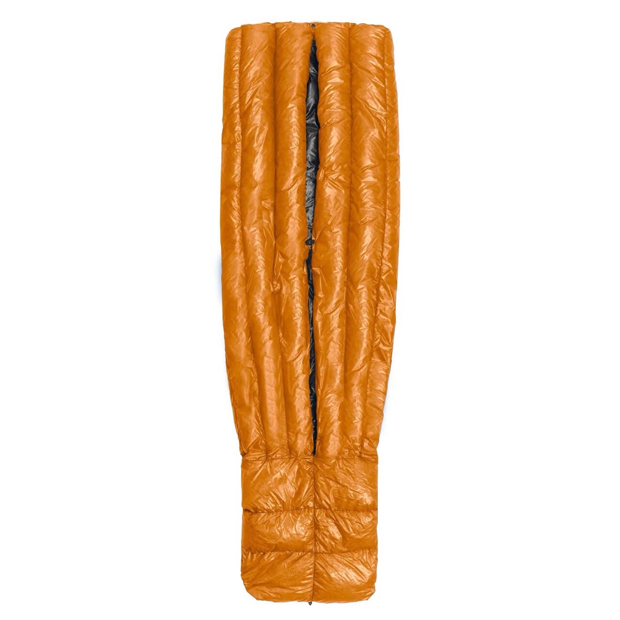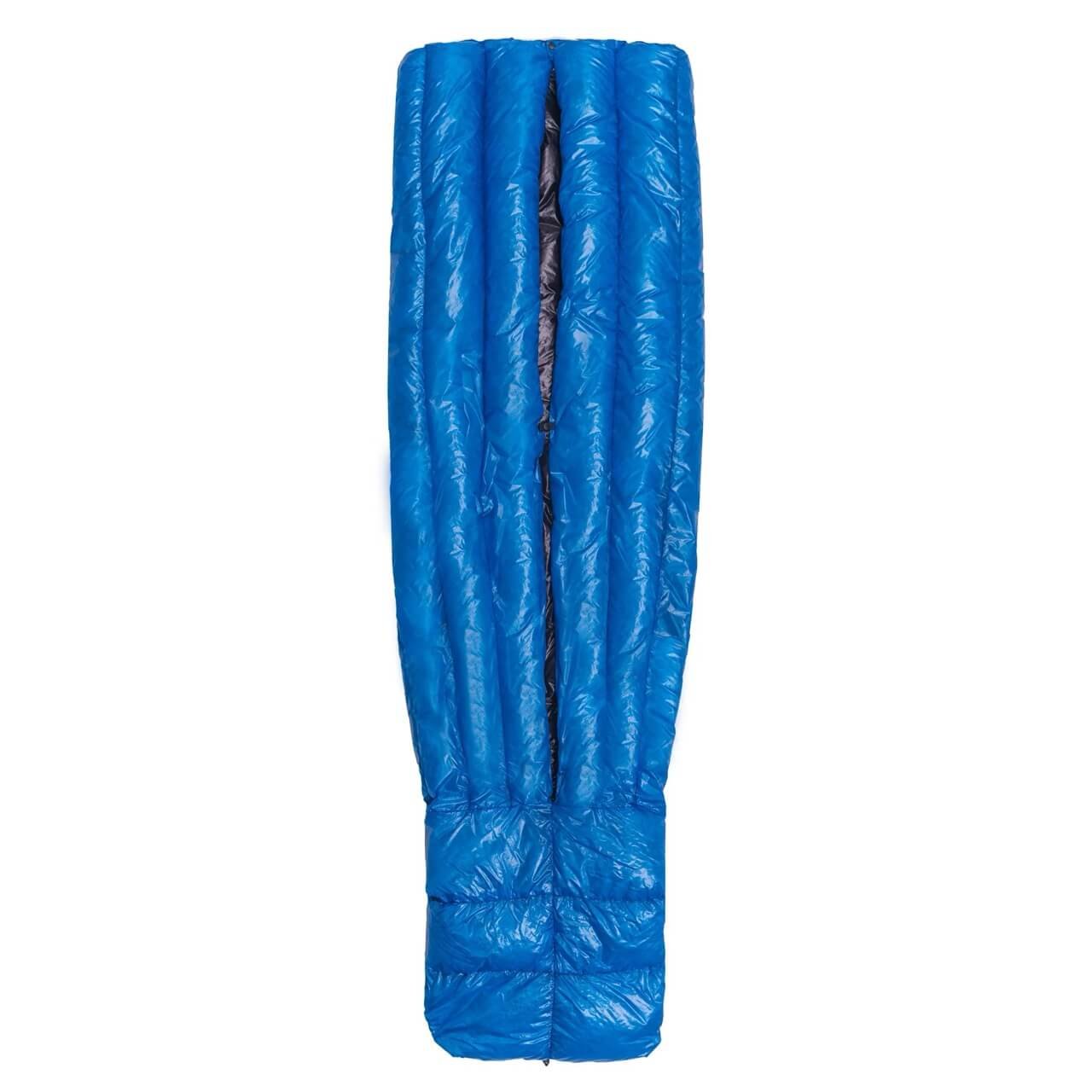 Zpacks Summer Quilt / Winter Liner - provides just the right amount of warmth for summer nights when temperatures are above +4°C (40°F). It is exceptionally lightweight and compact, making it perfect for slipping into a day pack or maintaining an unbeatable base weight on extended trips. Designed for convenience, the quilt features snap closures at the center and neck, allowing for easy venting on warmer nights. A shock cord at the neck can be cinched to seal out drafts.