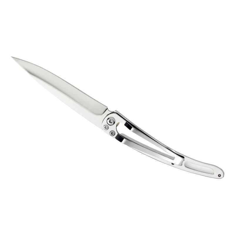 Ultra ľahký vreckový nôž z nerezovej oceľe 420 s lesklým povrchom. Čepeľ so špeciálnym systémom uzamykania “liner lock”. Rukoväť je vyrobená z priesvitného polykarbonátu, ktorý sa postará o jeho pútavý vzhľad. Dodávané v darčekovom balení.