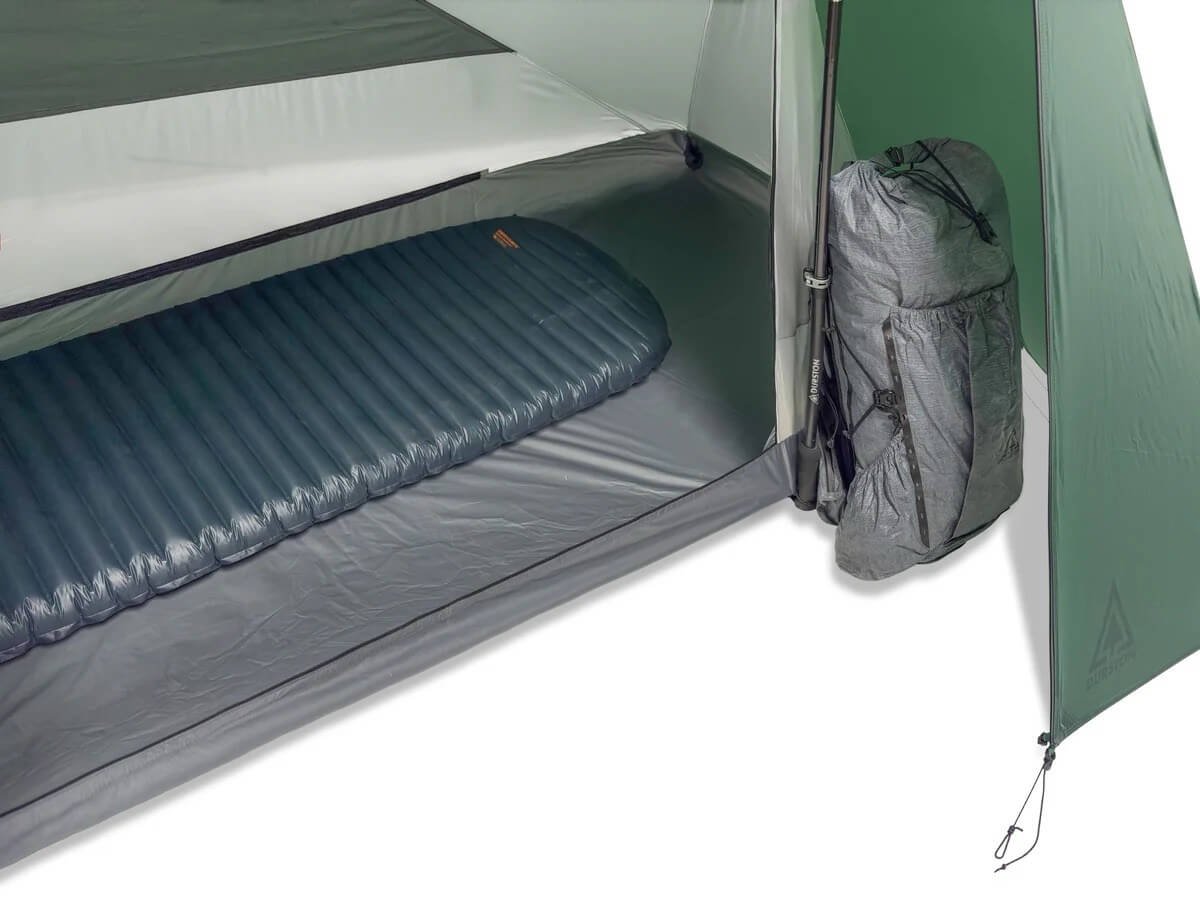 Podlaha má tvar pravidelného štvoruholníka a na postavenie stanu slúžia dve turistické palice alebo Durston Z-Flick Tent Poles (nie sú súčasťou). Eliminácia tradičných hliníkových stanových prútov výrazne znižuje celkovú váhu stanu - iba 890 gramov. Tento dvojvrstvový stan má vonkajšiu vrstvu z odolného silpoly materiálu (silikónom potiahnutý polyester), ktorý odoláva vode, UV žiareniu a neprevesuje sa po premoknutí.