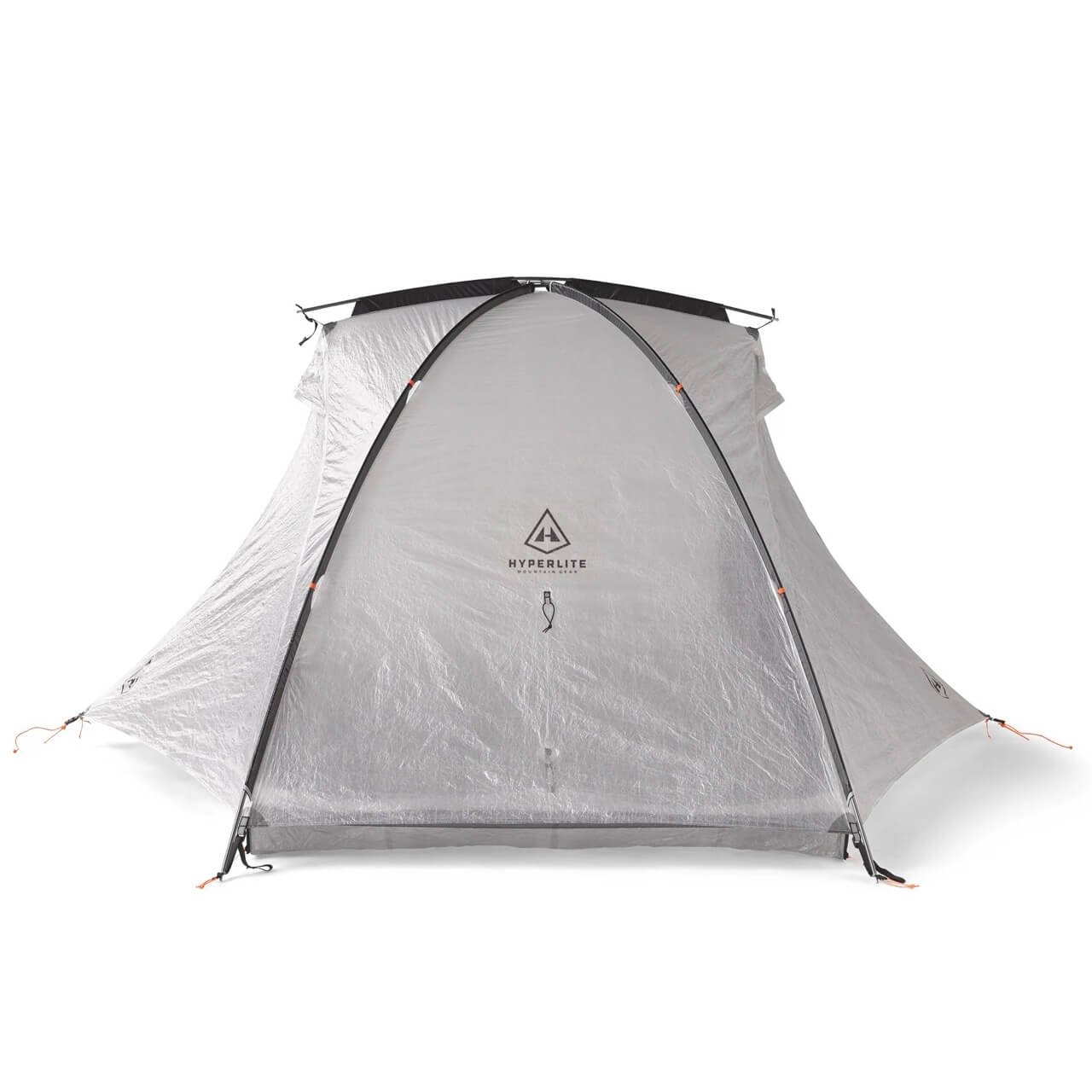 Hyperlite Mountain Gear Crosspeak 2 - is a two-person, freestanding tent designed with ultralight performance in mind. It features a single-wall construction made from Dyneema Composite Fabric for both the canopy and the floor, providing strength and water resistance while minimizing overall weight. The tent is supported by DAC Featherlite NSL aluminum poles that fold down to a compact 37 cm length and are stored externally in an integrated sleeve system for quick deployment. The full packed size is approximately 25 × 18 × 18 cm, with a total weight of around 964 g.