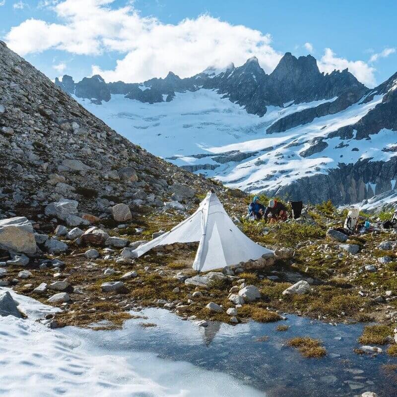 Hyperlite Mountain Gear pyramídový stan UltaMid 2 - priestranný pyramídový stan pre 2 osoby. UltaMid je vyrobený použitím ultraľahkého, ripstop, nepremokavého a nenasiakavého materiálu DCF8 Dyneema®. Vďaka použitému materiálu a jeho minimálnej hmotnosti je schopný pokryť maximálny priestor. Ultamid je štvorsezónny, vhodný do každého prostredia, od najhorúcejších púští až po hory v zime. UltaMid sa vyrába v 2 veľkostiach určených pre 2 alebo 4 osoby. Na oporu stredu sa požívajú trekové alebo lyžiarske palice. Vlastnosti: pár prieduchov na vrchole, dostatok popruhov pre upevnenie a vodotesný zips na vchode. UltaMid bol testovaný v extrémnych podmienkach a ukázal sa byť stabilný, nepremokavý a odolný voči vetru, dažďu a snehu.