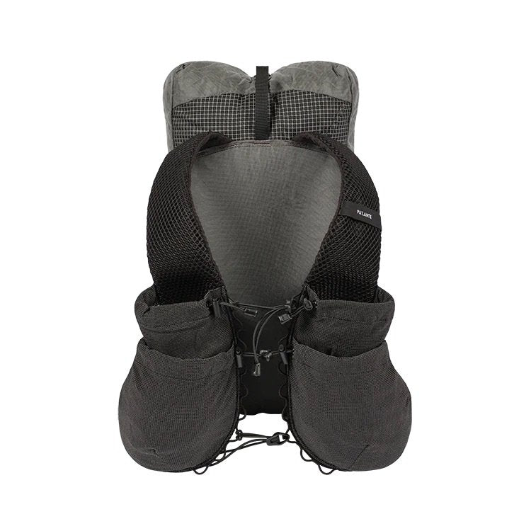- 3D sieťovina na popruhoch v štýle bežeckej vesty a s dvoma na vrchu zaťahovateľnými vreckami na každej strane