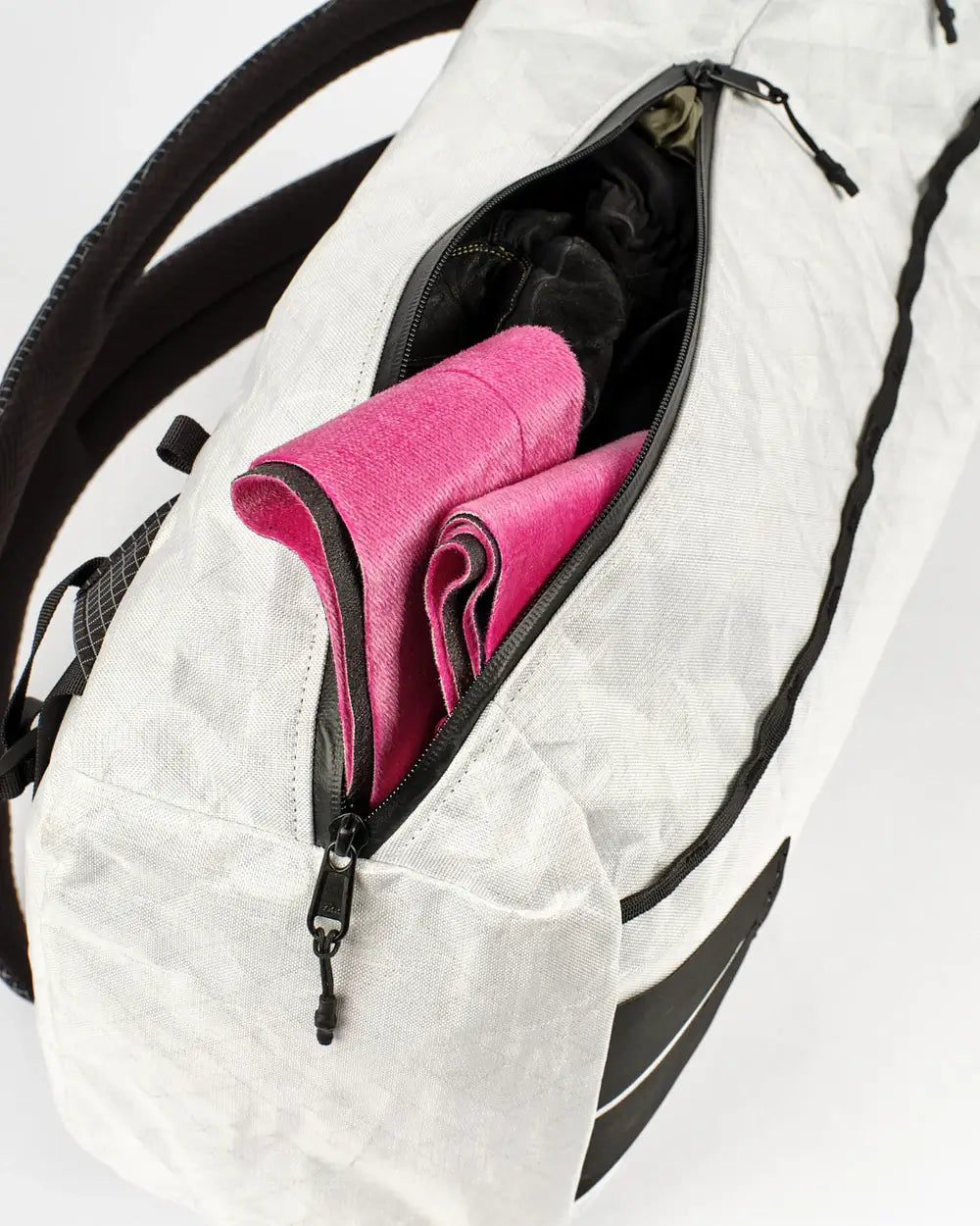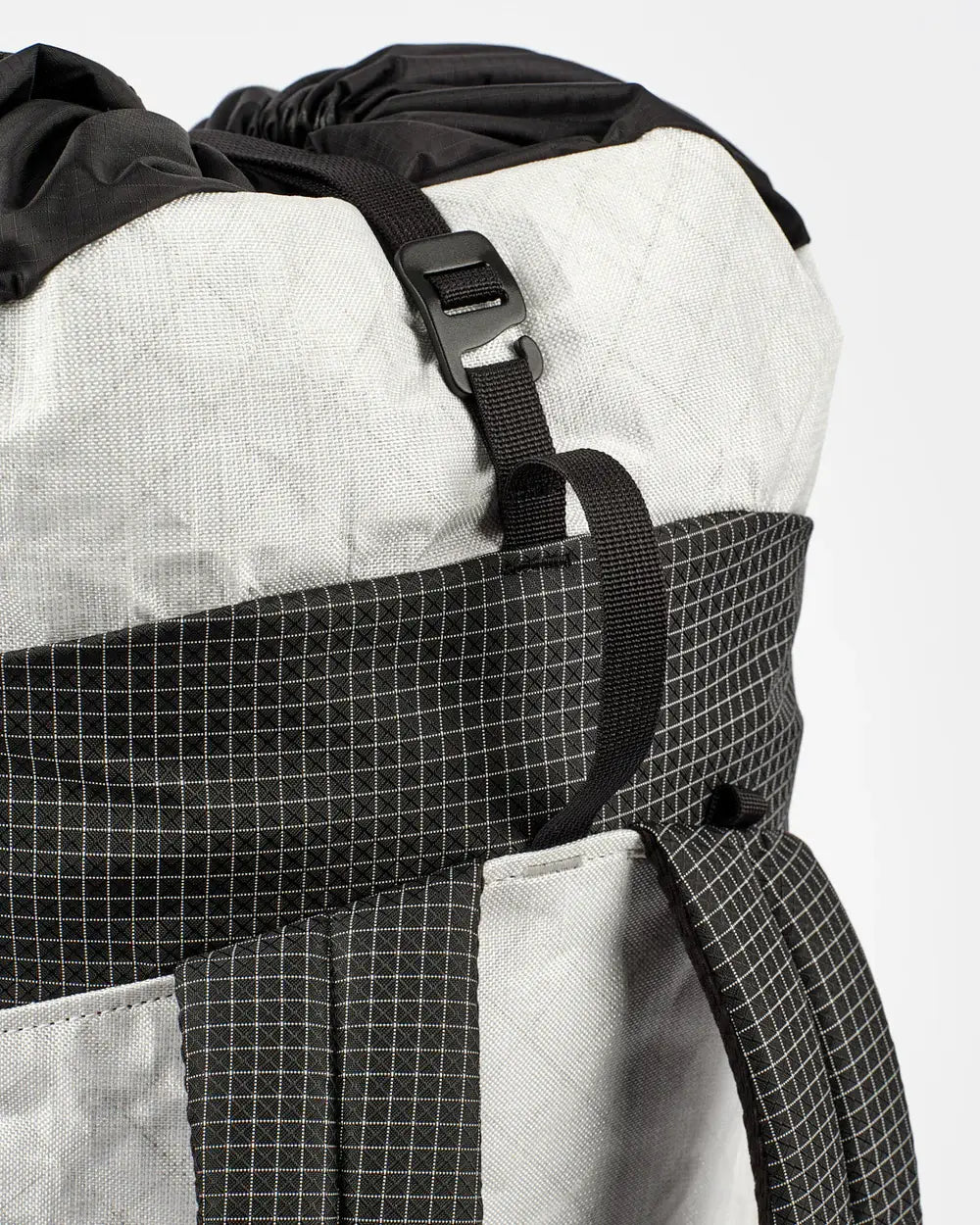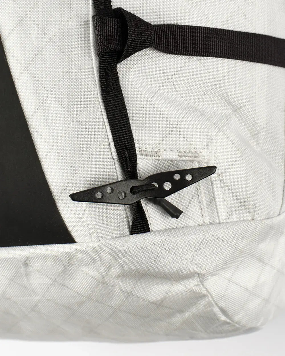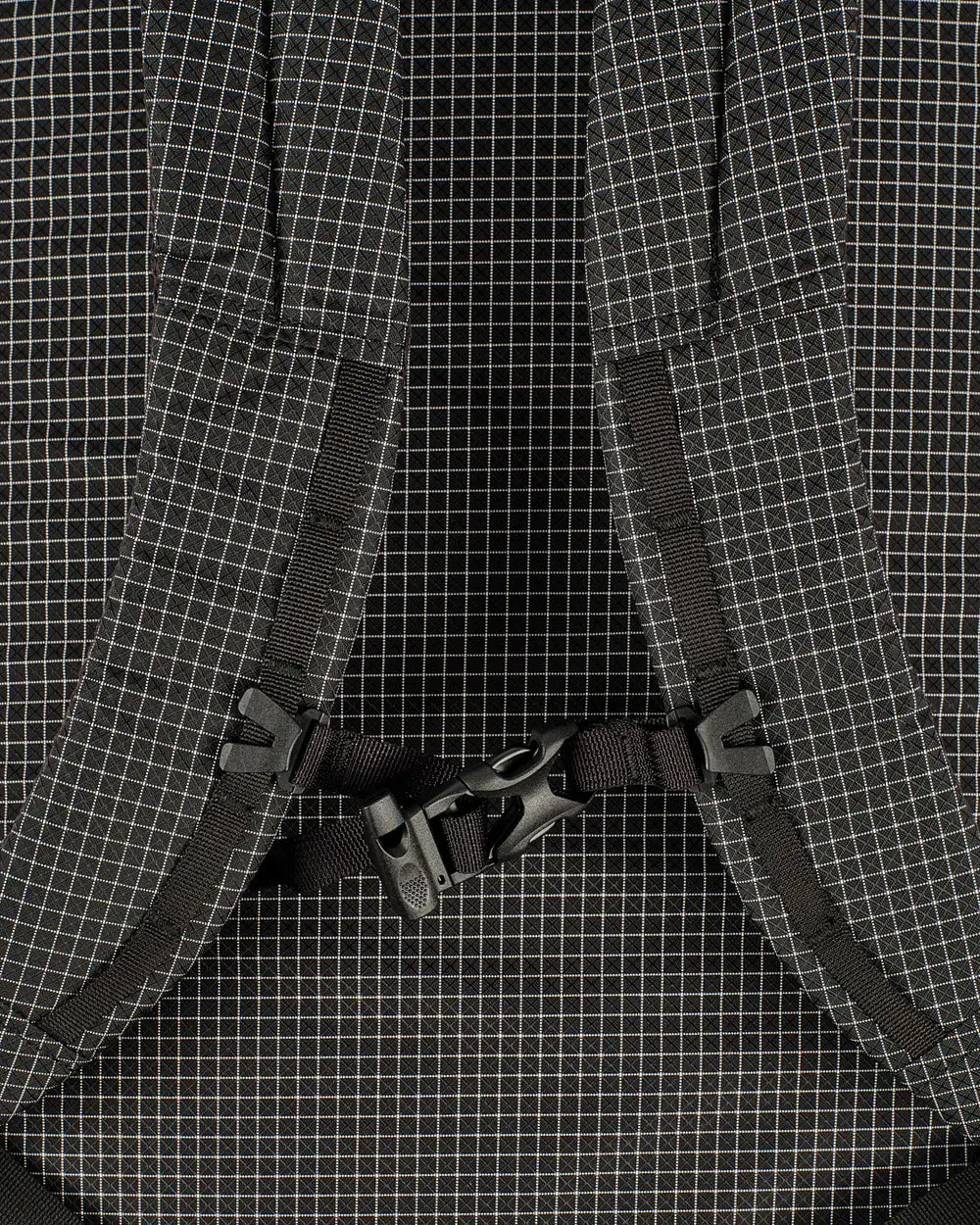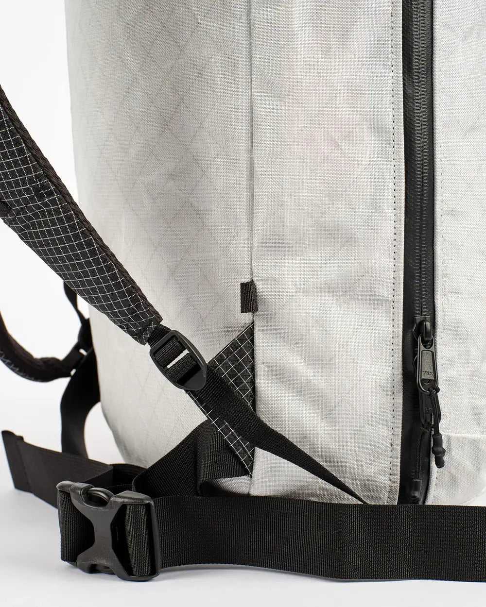 Batoh je vyrobený z odolných materiálov. Na výber sú dve varianty: čierny 210d UHMWPE Gridstop s hydrofóbnou karbonátovou vrstvou a biely Ultraweave 400TX, ktorý ponúka vyššiu odolnosť voči oderu a lepšiu vodoodpudivosť. Odnímateľný penový chrbtový panel dodáva batohu oporu bez zníženia flexibility a jediná veľkosť s dĺžkou trupu 46 cm zabezpečuje vyvážené a stabilné nosenie. Medzi hlavné funkcie patrí zipsom uzatvárateľné vrecko na lavínové vybavenie, vnútorné členenie hlavnej komory a uzatváranie pomocou sťahovacej šnúrky. Súčasťou je aj skrývateľný bedrový popruh, pričom batoh zámerne neobsahuje klasické vrecká na ramenných popruhoch pre čistejší profil.