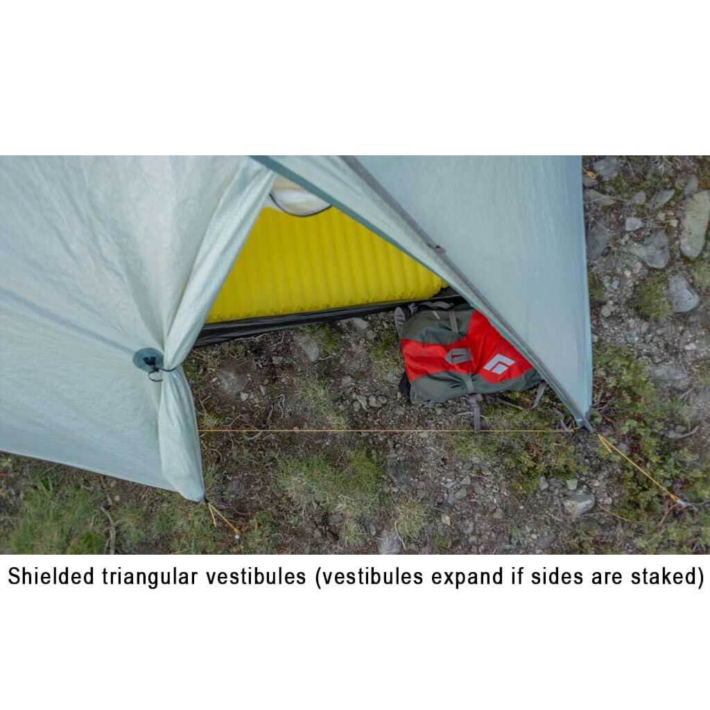 - Plne samonosný dizajn nevyžaduje kolíky na predsiene alebo dvere; nízko položené tropiko poskytuje lepšiu ochranu pred dažďom a vetrom.